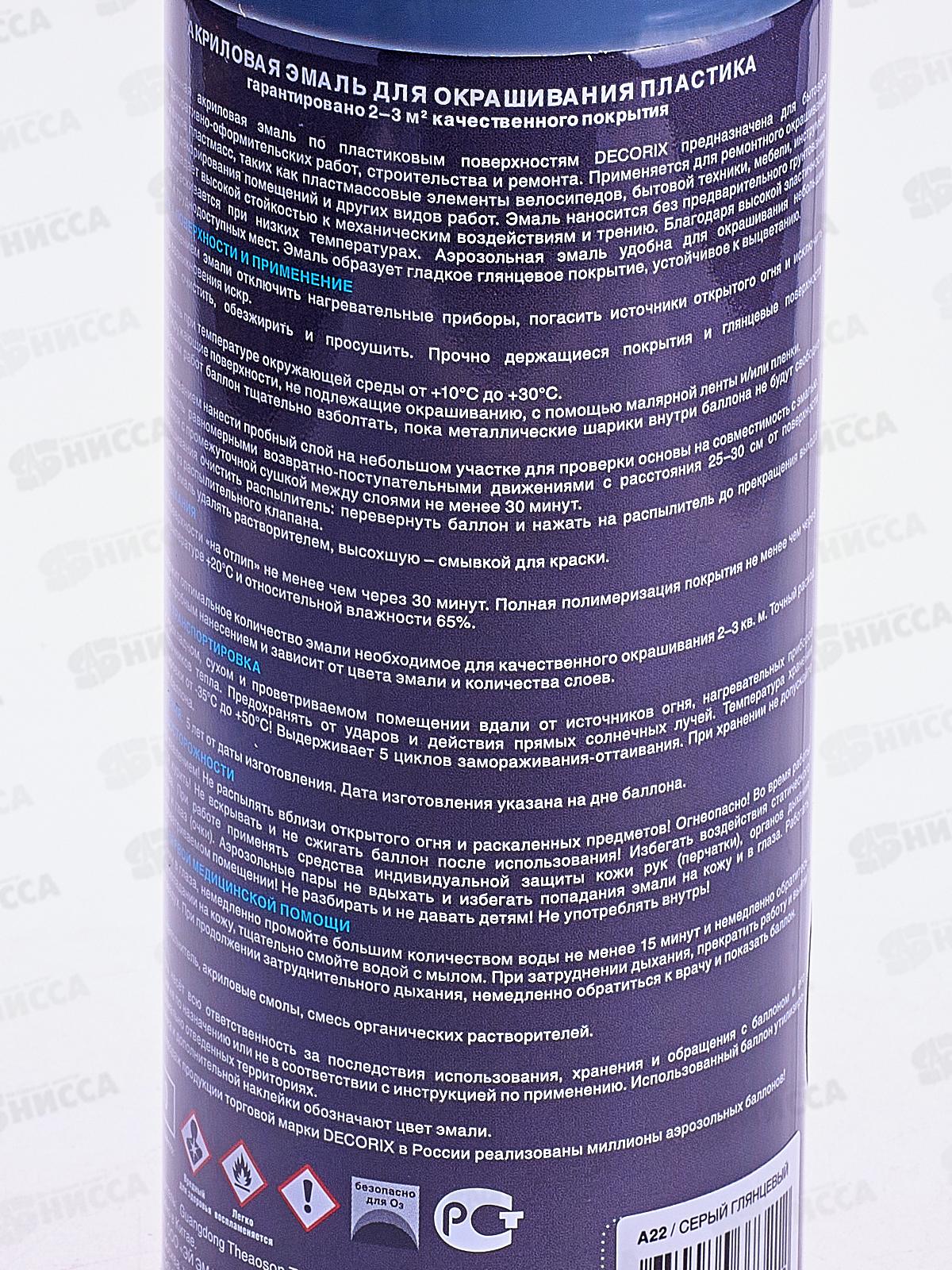 Аэрозольная эмаль по пластику DECORIX, 520мл, серый *12