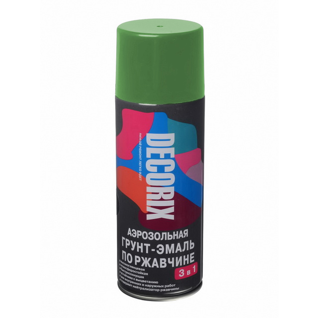 Аэрозольная грунт-эмаль по ржавчине 3в1 DECORIX, 520мл, зелёный *12