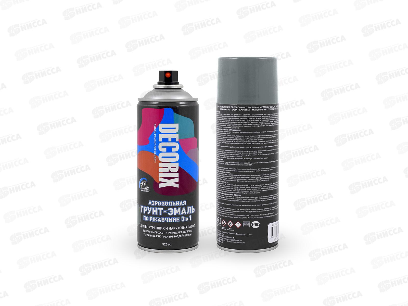 Грунт-эмаль по ржавчине 3в1 DECORIX аэрозольный 520мл, серебристый *12