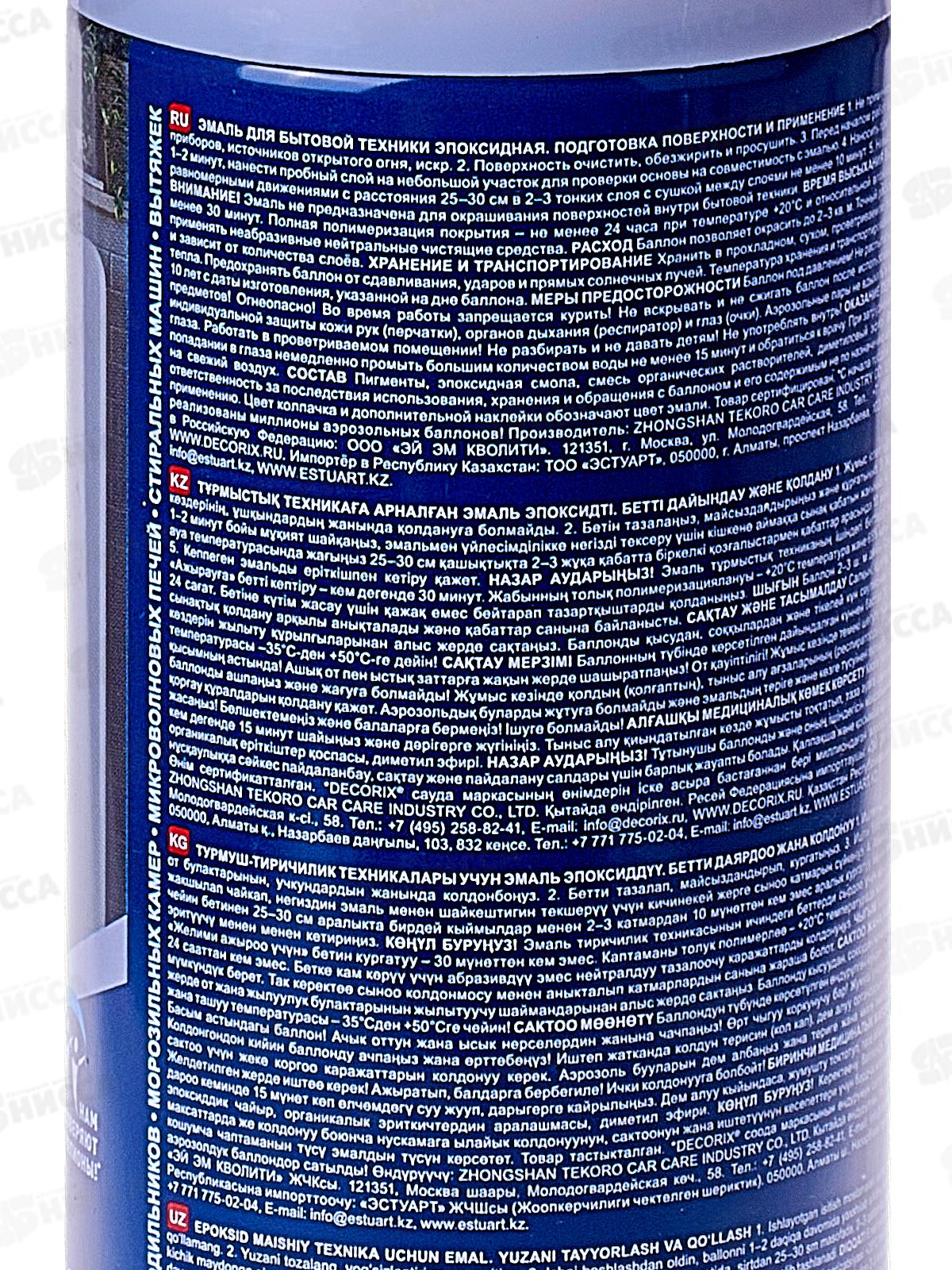 Эмаль DECORIX аэрозольная 520мл, для бытовой техники, белый эпоксидная *12