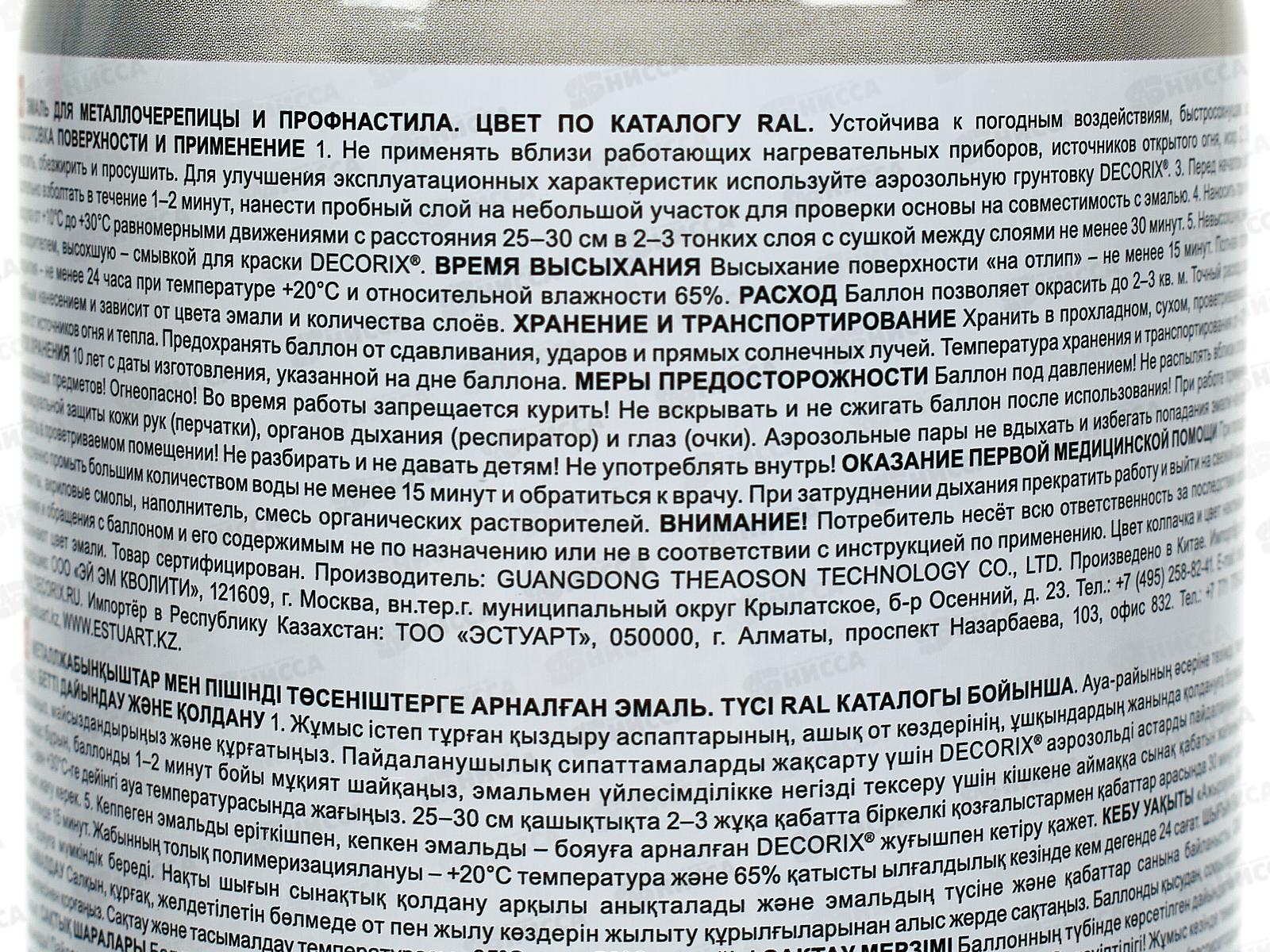 Эмаль DECORIX аэроз. 520мл, для м/ч, профнастила, RAL3005 винно-красный
