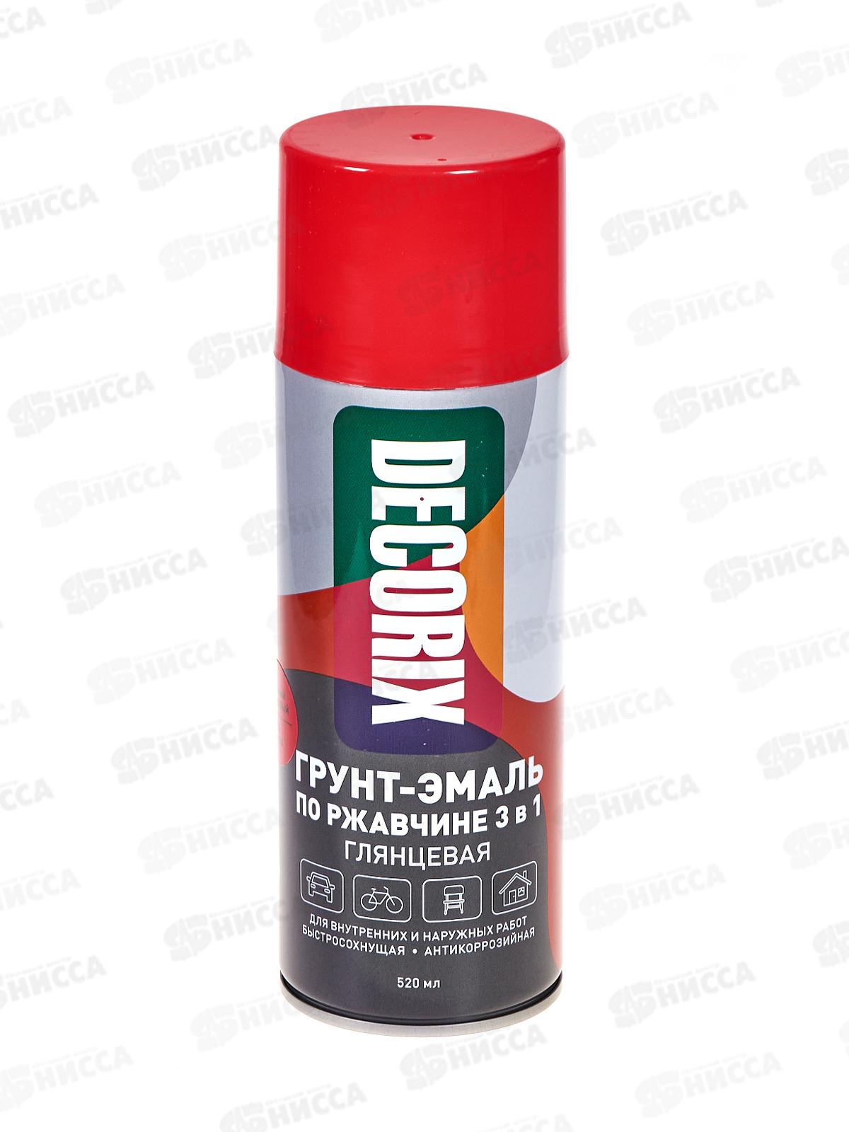 Грунт-эмаль по ржавчине 3в1 DECORIX аэроз. 520мл, красный глянцев *12