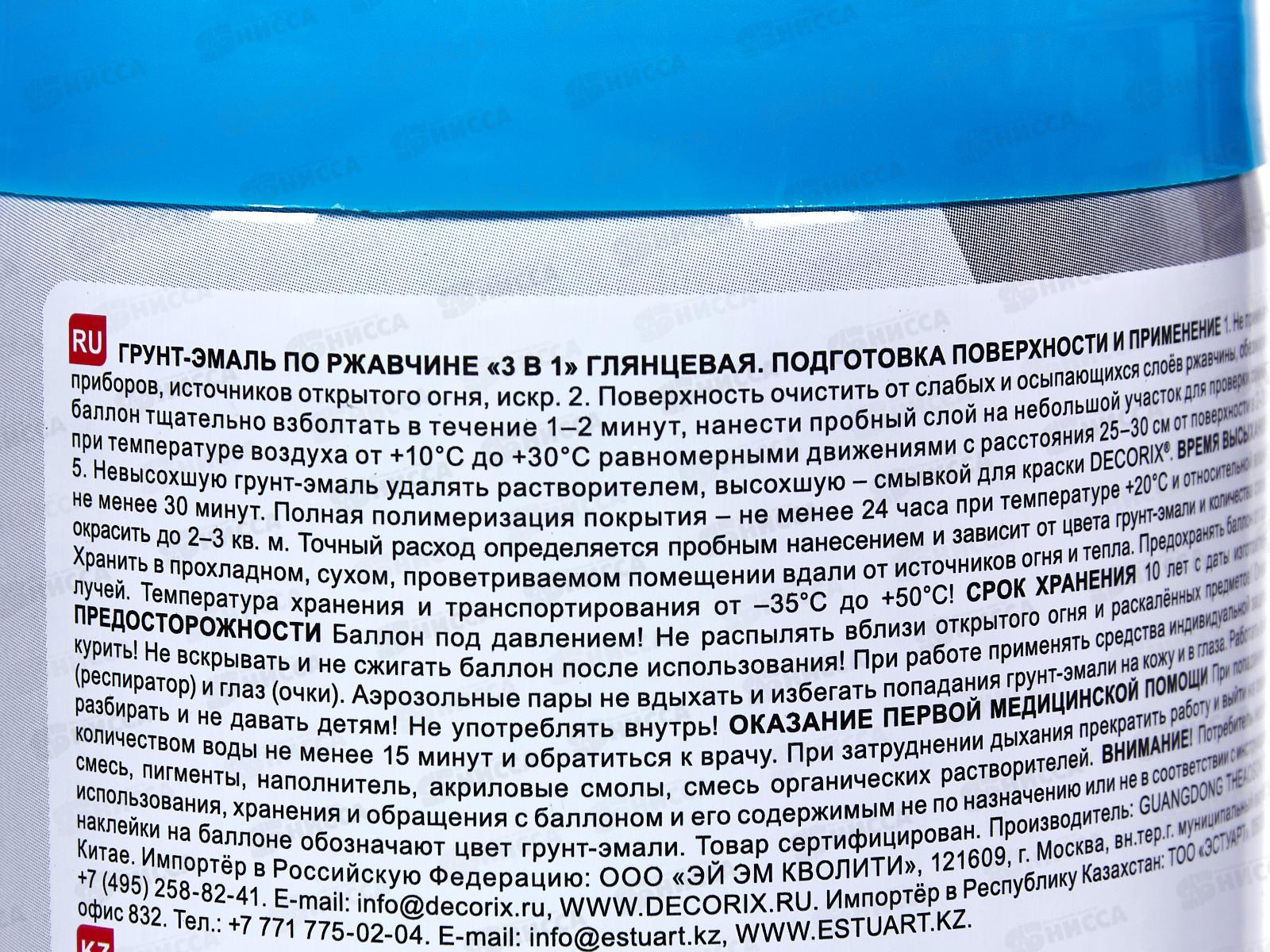 Грунт-эмаль по ржавчине 3в1 DECORIX аэроз. 520мл, синий глянцев *12