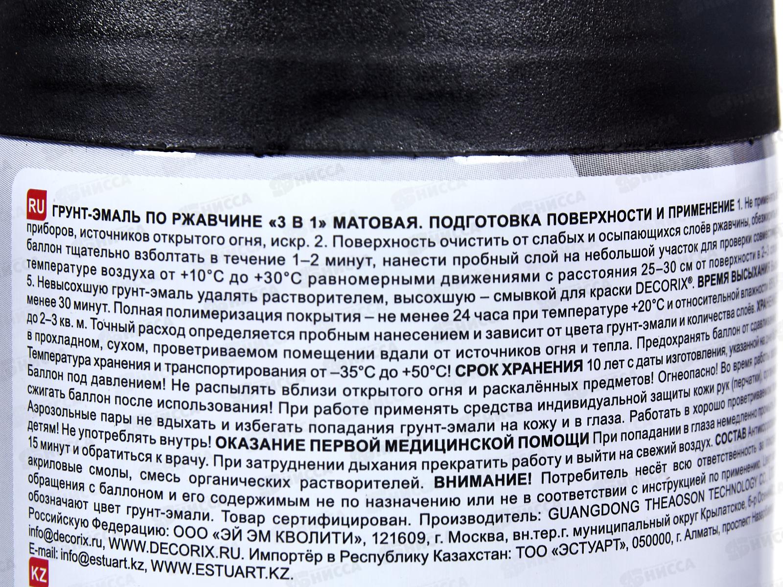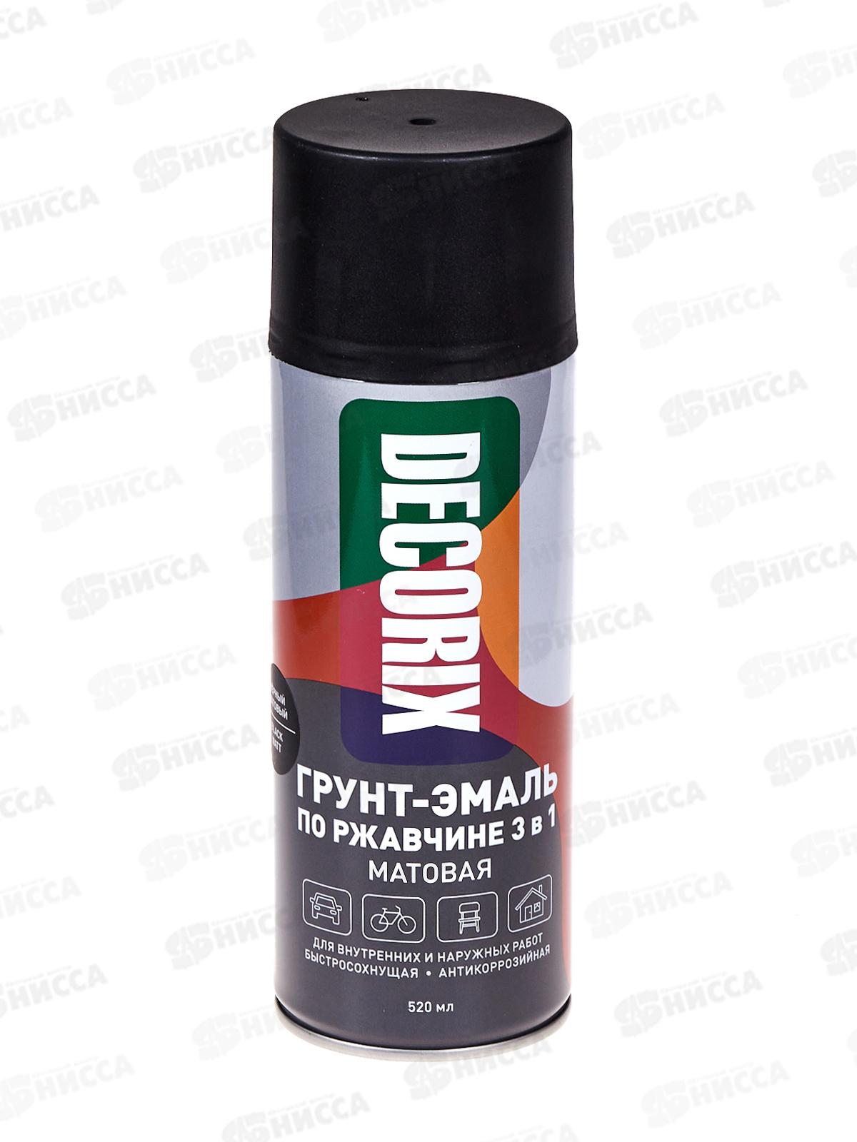 Грунт-эмаль по ржавчине 3в1 DECORIX аэроз. 520мл, черный матовый *12