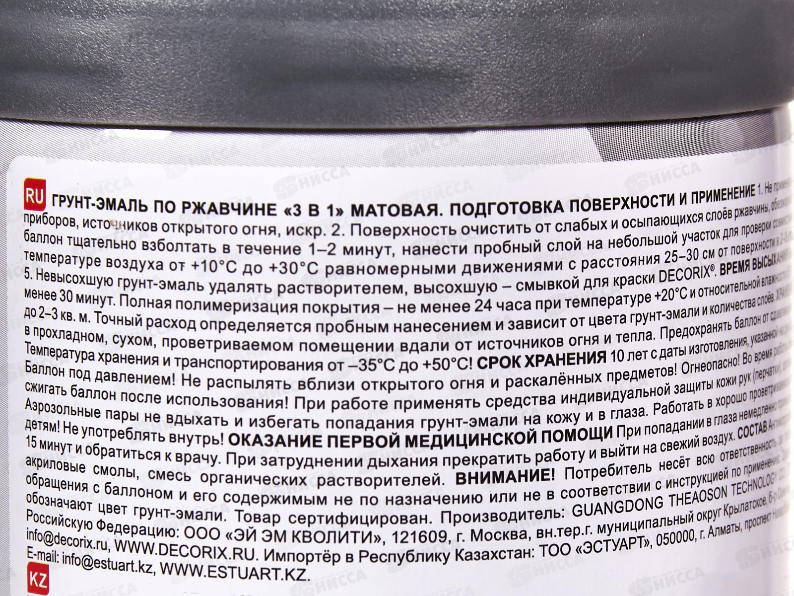Грунт-эмаль по ржавчине 3в1 DECORIX аэроз. 520мл, серый матовый *12