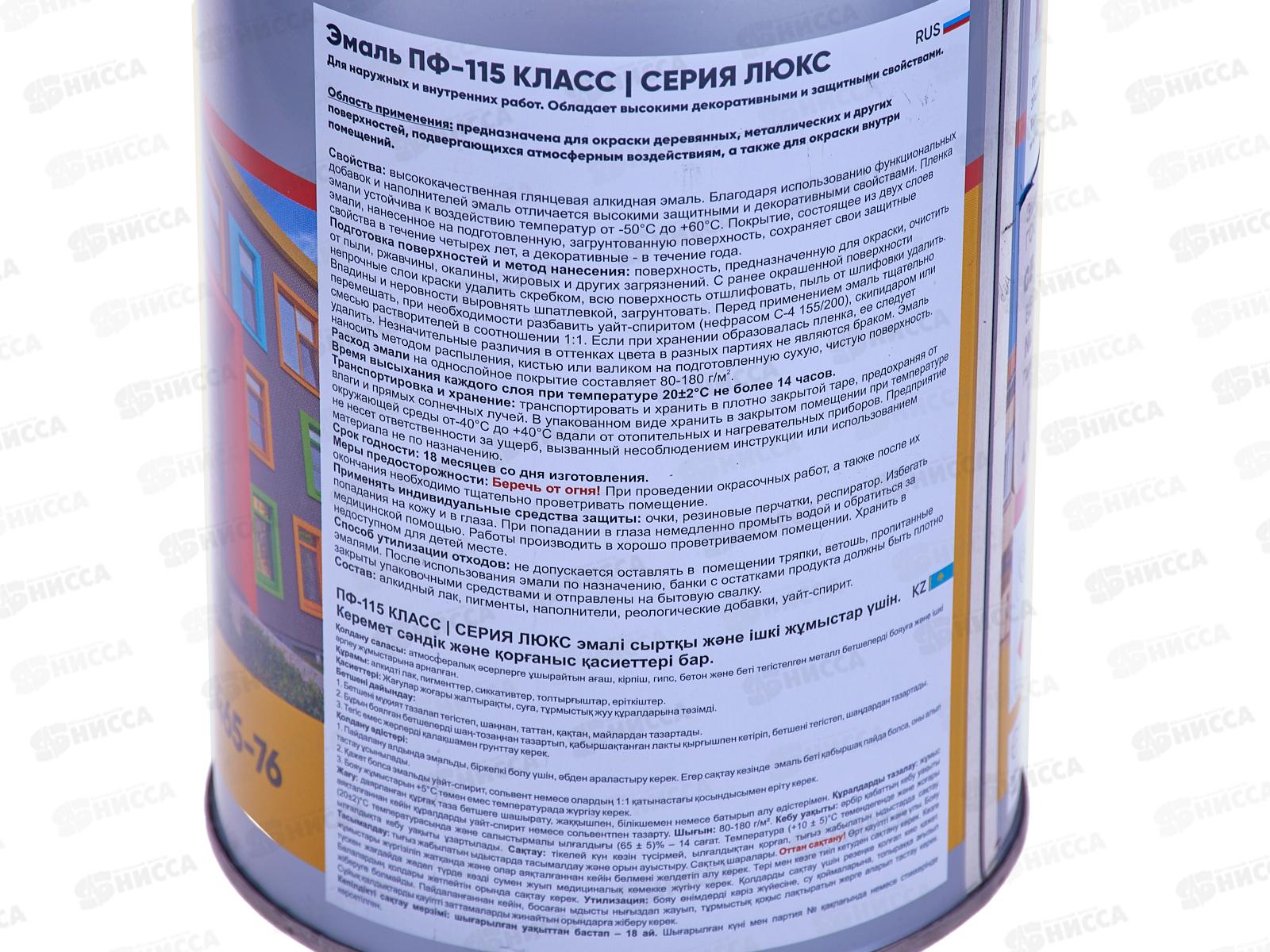 Эмаль алкидная ПФ-115 КЛАСС СЕРИЯ ЛЮКС предназначена для окраски деревянных, металлических и других поверхностей, подвергающихся атмосферным воздействиям, а также для окраски внутри помещений. Высококачественная глянцевая алкидная эмаль. Изготовлена на немецком оборудовании фирмы Netzsch по специальным технологиям. Благодаря использованию импортных добавок и наполнителей, эмаль отличается высокими защитными и декоративными свойствами. Пленка эмали устойчива к воздействию температур от -50°С до +60 С.