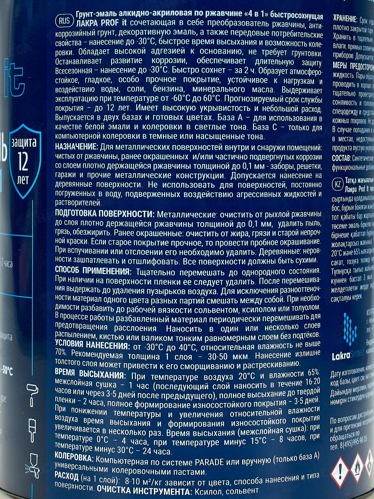 Грунт-эмаль 4в1 PROF IT 0,8кг Графит RAL7024, быстросохнущая, 9592001 *10/640
