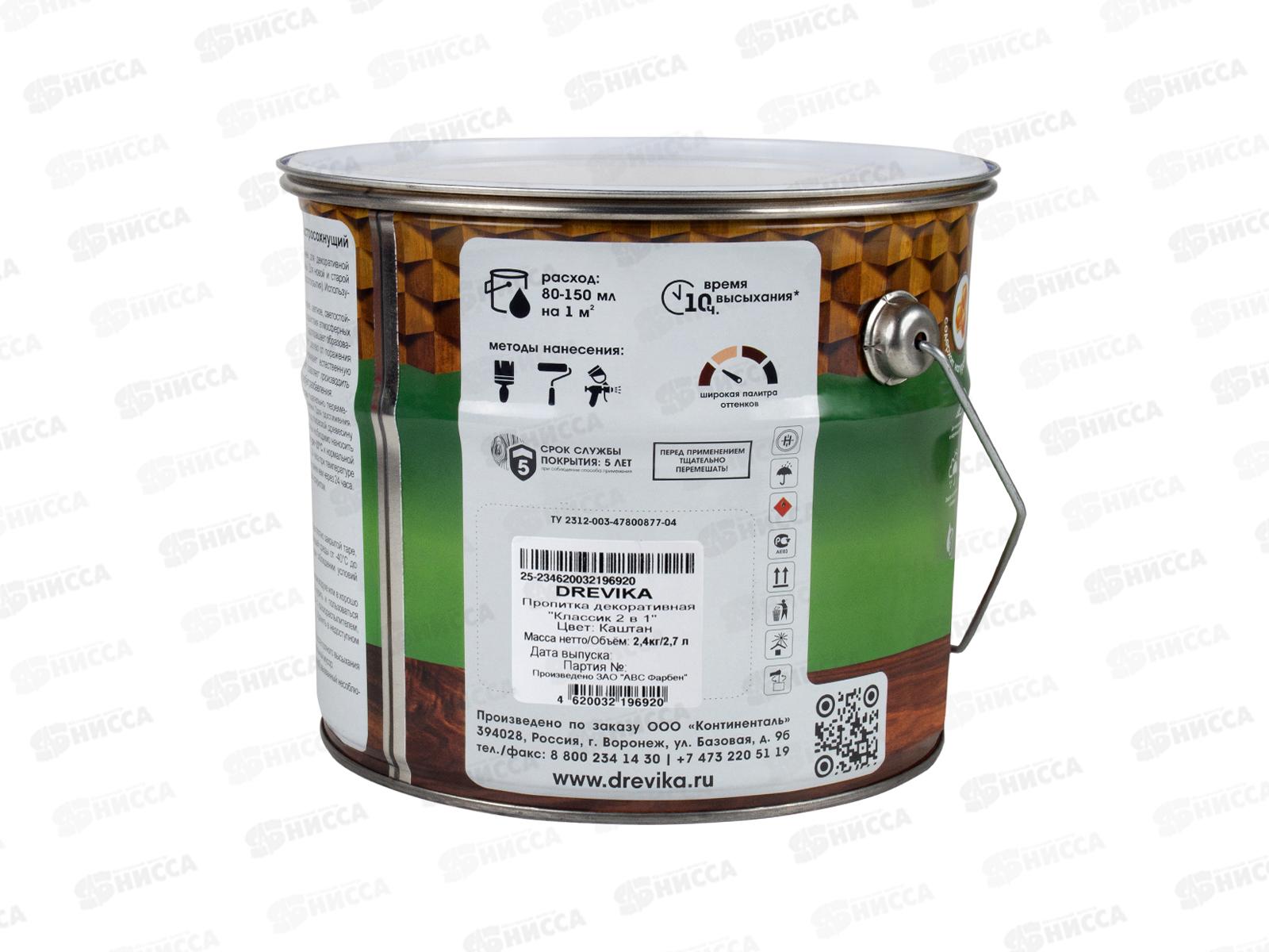 Декоративная пропитка DREVIKA 2в1 Классик каштан 2,7л *4