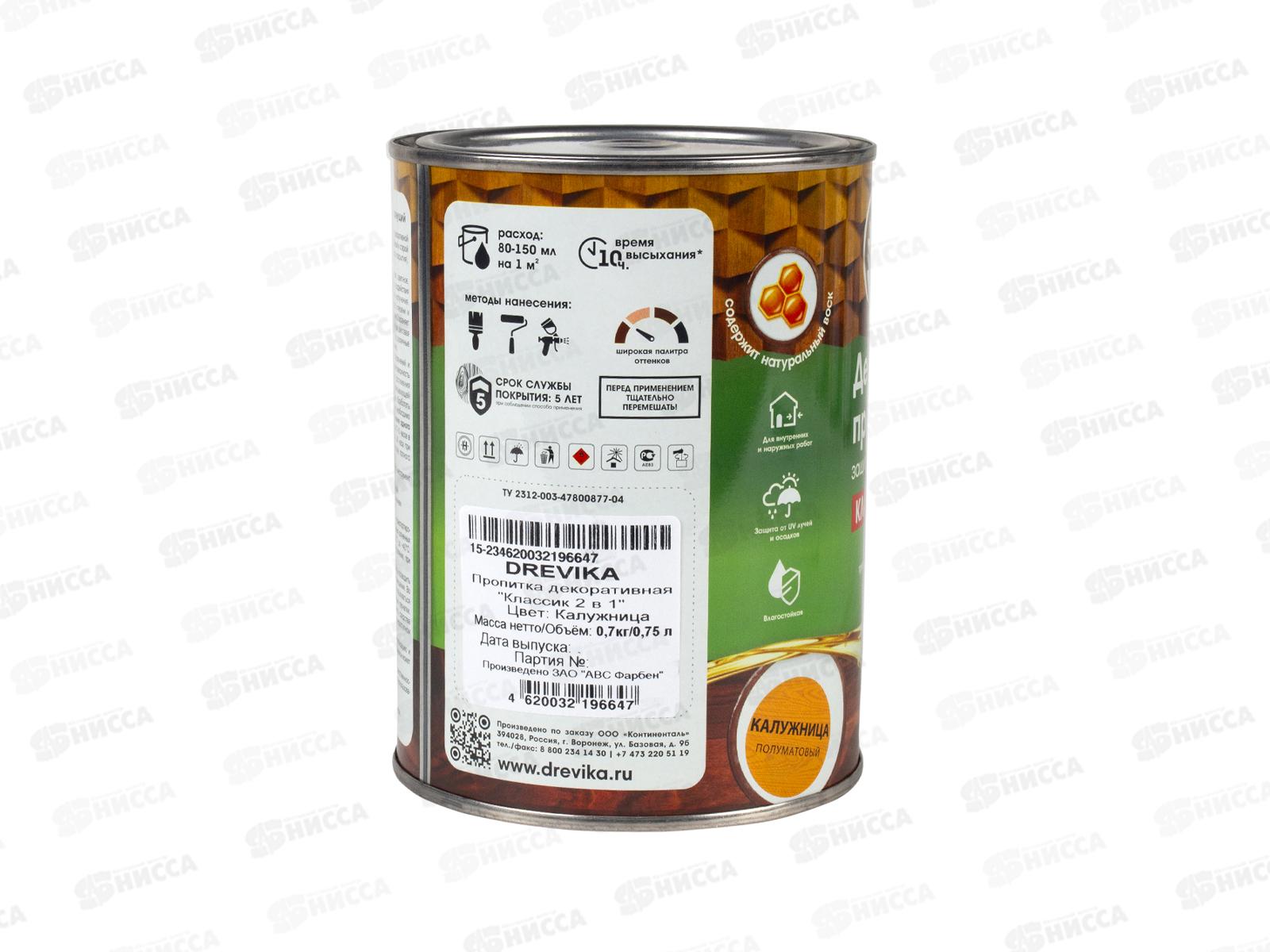 Декоративная пропитка DREVIKA 2в1 Классик калужница 0,75л *8