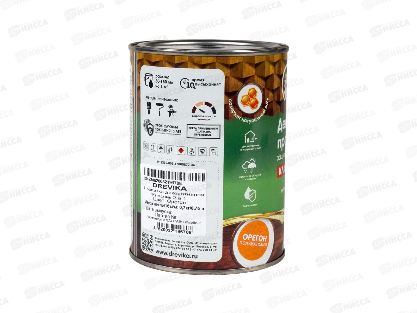 Декоративная пропитка DREVIKA 2в1 Классик орегон 0,75л *8