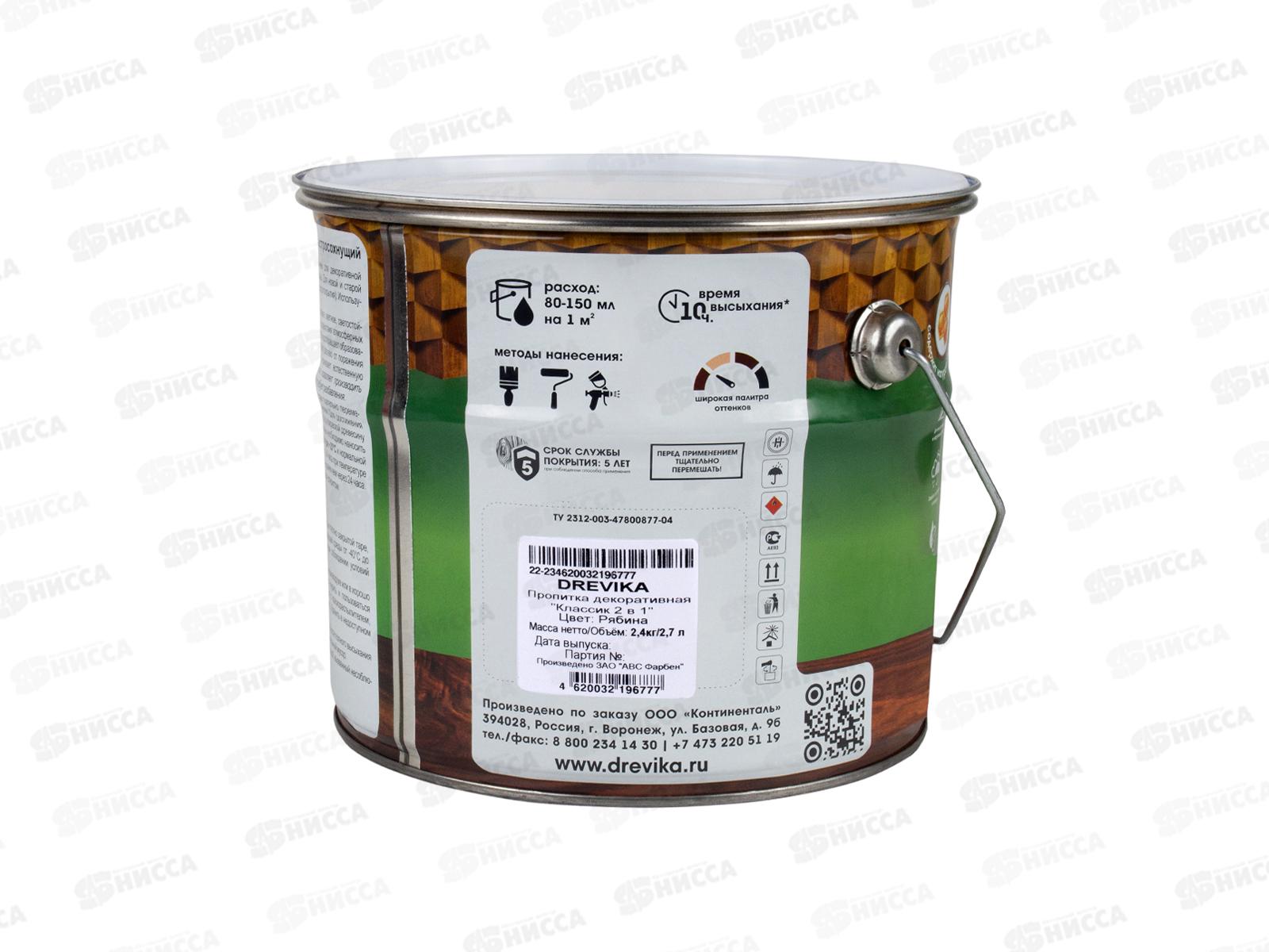 Декоративная пропитка DREVIKA 2в1 Классик рябина 2,7л *4