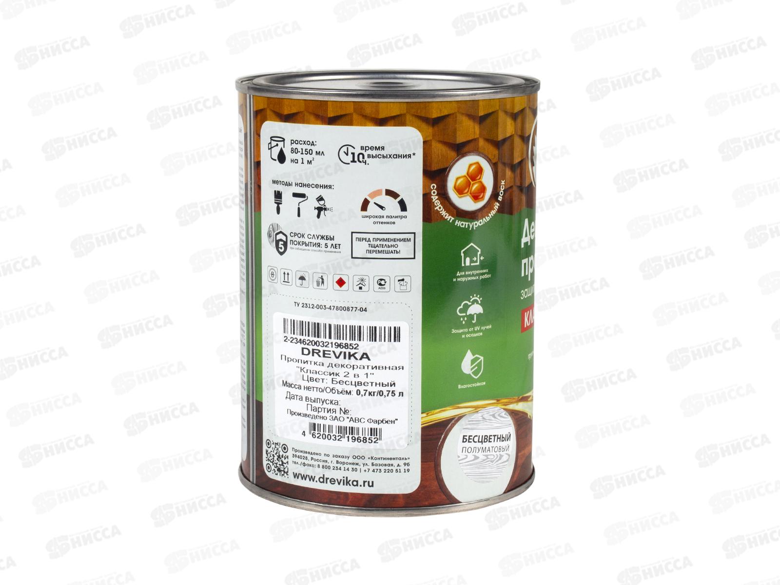 Декоративная пропитка DREVIKA 2в1 Классик бесцветный 0,75л *8