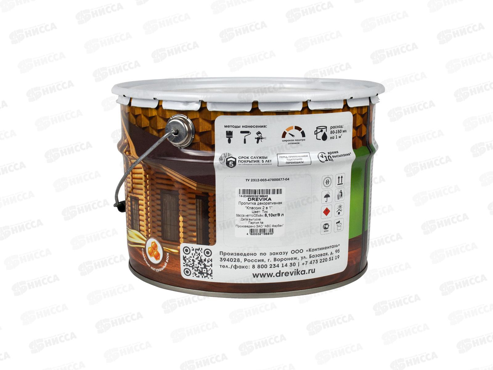 Декоративная пропитка DREVIKA 2в1 Классик тик 9л *1