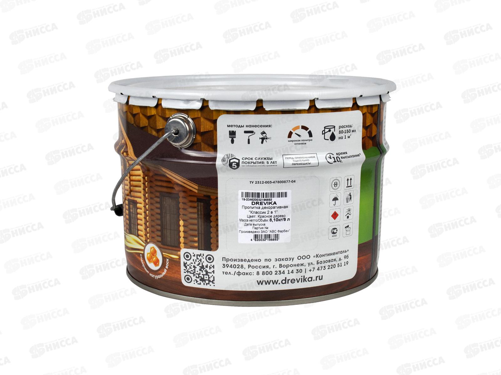 Декоративная пропитка DREVIKA 2в1 Классик красное дерево 9л *1