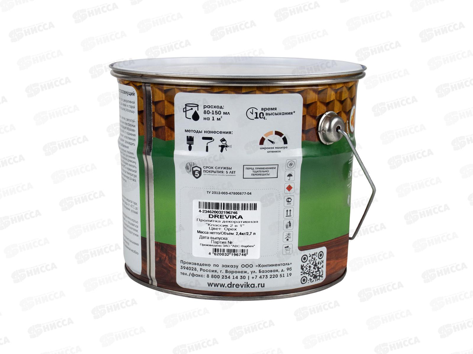 Декоративная пропитка DREVIKA 2в1 Классик орех 2,7л *4