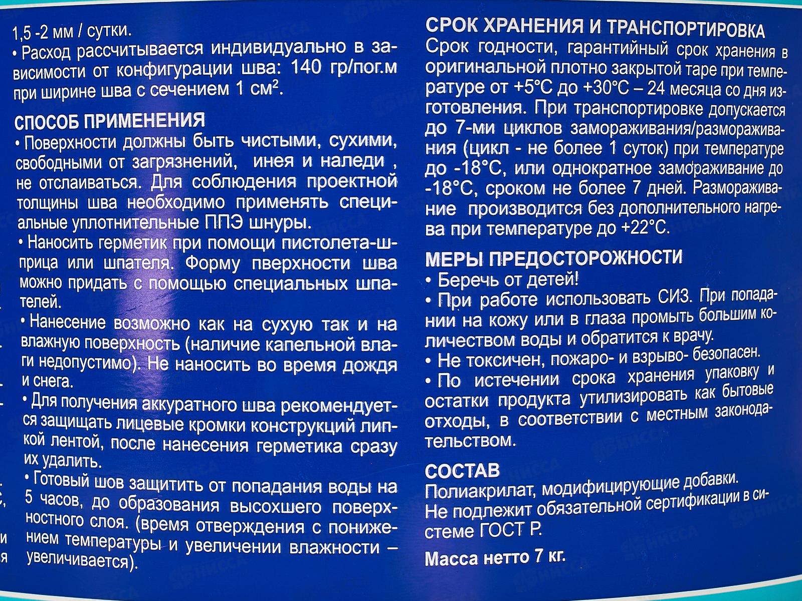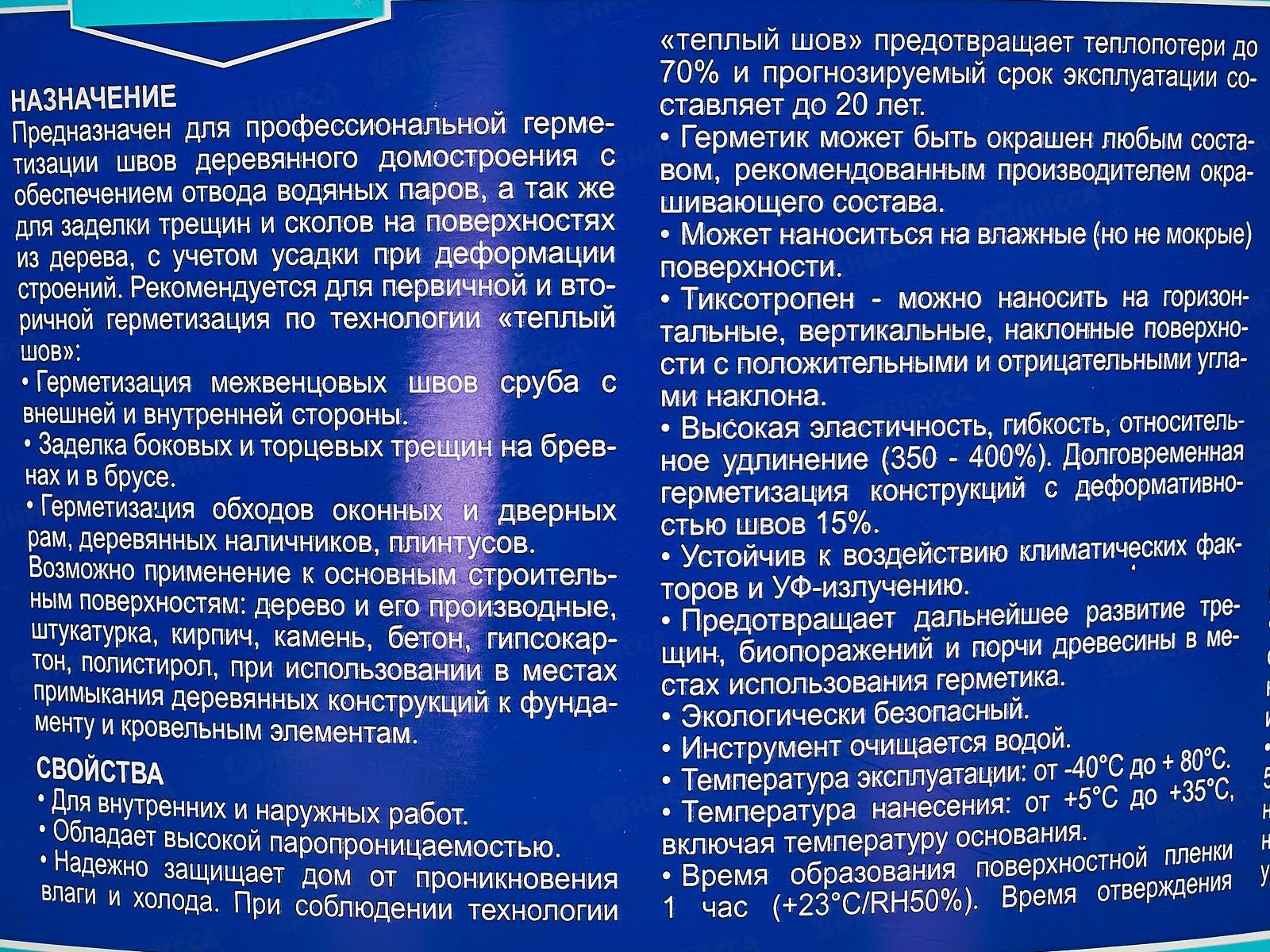 Герметик KRASS Термо Барьер 7кг акриловый для деревянного дома Сосна *90
