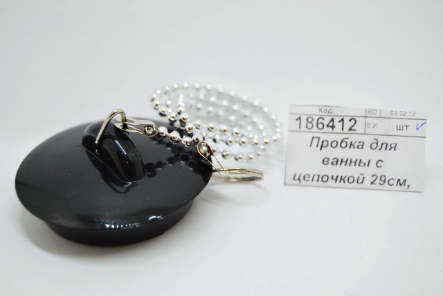 Пробка для ванны с цепочкой 29см, резина d4,5см/168/08-12 463-754
