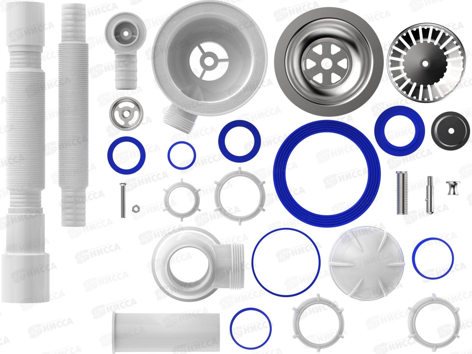 Сифон бутылочного типа от бренда Aquant, подходит для кухонных моек с диаметром сливного отверстия 90 мм. Выпуск 3 1/2" - разборный, с металлическими решетками 113 мм и ситечком 78 мм в комплекте с трубкой и круглым переливом с решеткой из нержавеющей стали. Корпус сифона увеличенный, для достижения максимальной проточности и поддержания оптимального уровня гидрозатвора с высотой 55мм. Идет в комплекте с гофротрубой с универсальным выходом под два диаметра 40/50мм для подключения к канализации. Сифон прост в установке, позволяет прочистить его в случае засорения без демонтажа и способен улавливать мелкие предметы, например, кольца или серьги. Конструкция корпуса сифона Аквант имеет эксклюзивный дизайн и запатентована патентом на промышленный образец. Внутренняя поверхность стакана сифона с зеркальной полировкой обеспечивает улучшенную проточность. Все пластиковые детали сифона производятся из первичного полипропилена с добавлением снежно-белого красителя. Прокладки изготовлены из высококачественных пластикатов (TPE, PVC, LDPE) и обеспечивают длительный срок службы и высокую ремонтопригодность. Сифон выдерживает перепад температур от +5 до +80 градусов. Все необходимые прокладки, гайки и винты в комплекте.
