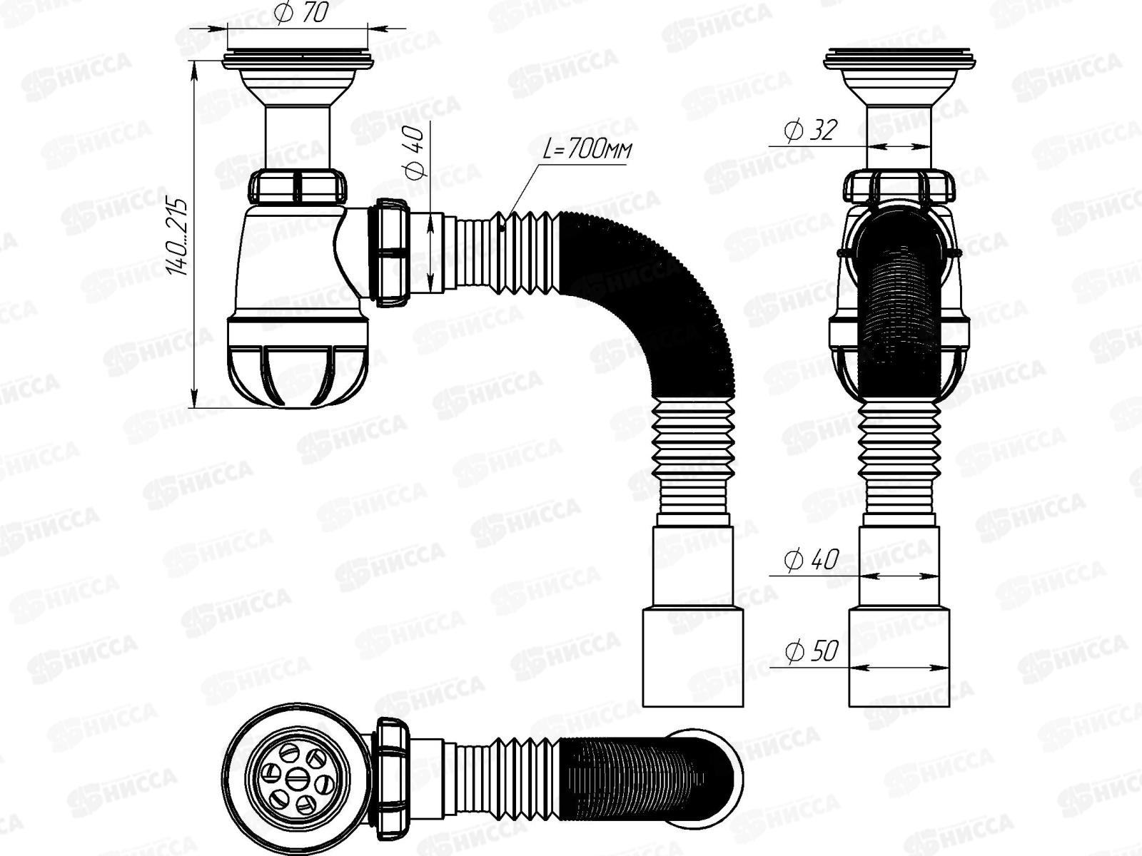 Малый сифон бутылочного типа от бренда Aquant для раковин и умывальников с диаметром сливного отверстия 50 мм, с удлиненной горловиной с литым выпуском (тюльпан) с решеткой из нержавеющей стали O70мм. Корпус сифона небольшой по габаритам, с диаметром всего 70мм. Решетка крепится к выпуску на винт 80 мм и гайку шестигранную М6. Патрубок отвода под гайку 1 1/4" (внутренний диаметр 32мм). Высота установки сифона регулируется. Идет в комплекте с гофротрубой с универсальным выходом под два диаметра 40/50мм для подключения к канализации. Сифон прост в установке, позволяет прочистить его в случае засорения без демонтажа и способен улавливать мелкие предметы, например, кольца или серьги. Конструкция корпуса сифона Аквант имеет эксклюзивный дизайн и запатентована патентом на промышленный образец. Внутренняя поверхность стакана сифона с зеркальной полировкой обеспечивает улучшенную проточность. Скорость слива: 25 л/мин. Все пластиковые детали сифона производятся из первичного полипропилена с добавлением снежно-белого красителя. Прокладки изготовлены из высококачественных пластикатов (TPE, PVC, LDPE) и обеспечивают длительный срок службы и высокую ремонтопригодность. Сифон выдерживает перепад температур от +5 до +80 градусов. Все необходимые прокладки, гайки и винты в комплекте.