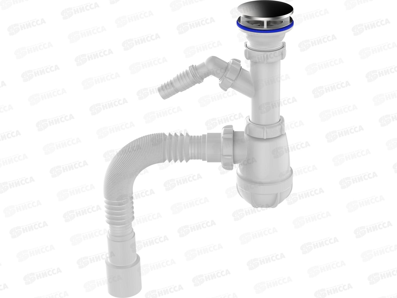 Сифон бутылочного типа от бренда Aquant для раковин и моек с диаметром сливного отверстия 50 мм и решеткой 70мм. Отличительная особенность этого сифона в разборном выпуске 1 1/2", который комплектуется металлической решеткой 70 мм и специальной декоративной хромированной крышкой, которая надевается на решётку слива и визуально закрывает её, оставляя достаточно места для свободного слива воды. В результате обычная раковина с простой решеткой на горловине выглядит так, словно на ней установлен дорогой сифон клик-клак. Корпус сифона увеличенный, для достижения максимальной проточности и поддержания оптимального уровня гидрозатвора с высотой 55мм. Идет в комплекте с специальным патрубком с отводом для подключения стиральной машины и гофротрубой с универсальным выходом под два диаметра 40/50мм для подключения к канализации. Сифон прост в установке, позволяет прочистить его в случае засорения без демонтажа и способен улавливать мелкие предметы, например, кольца или серьги. Конструкция корпуса сифона Аквант имеет эксклюзивный дизайн и запатентована патентом на промышленный образец. Внутренняя поверхность стакана сифона с зеркальной полировкой обеспечивает улучшенную проточность. Все пластиковые детали сифона производятся из первичного полипропилена с добавлением снежно-белого красителя. Прокладки изготовлены из высококачественных пластикатов (TPE, PVC, LDPE) и обеспечивают длительный срок службы и высокую ремонтопригодность. Сифон выдерживает перепад температур от +5 до +80 градусов. Все необходимые прокладки, гайки и винты в комплекте.