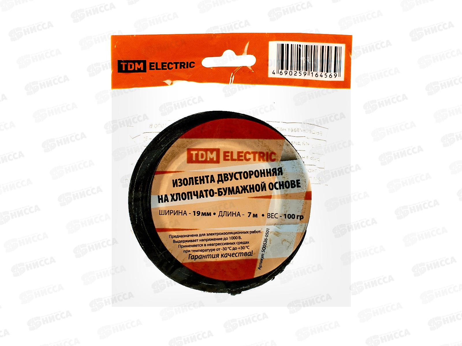 Изолента хлопчатобумажная TDM двусторонняя, 19мм 7м (100г), 0501