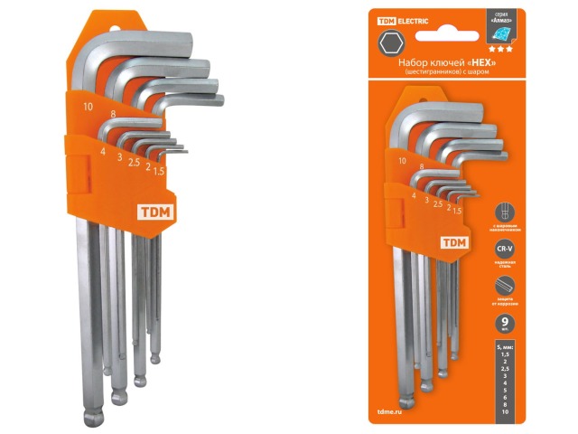 Набор ключей HEX 9 штук 1,5-10мм, блистер., TDM, 0104 *32