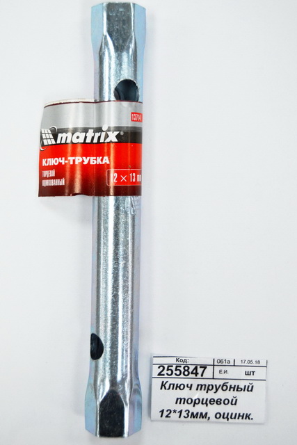 Ключ трубный торцевой 12*13мм, оцинкованный Matrix, 13714 *10/250