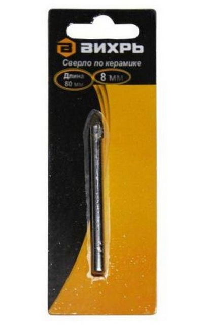 Сверло по керамике и стеклу 8 мм (1 шт. на блистере) Вихрь