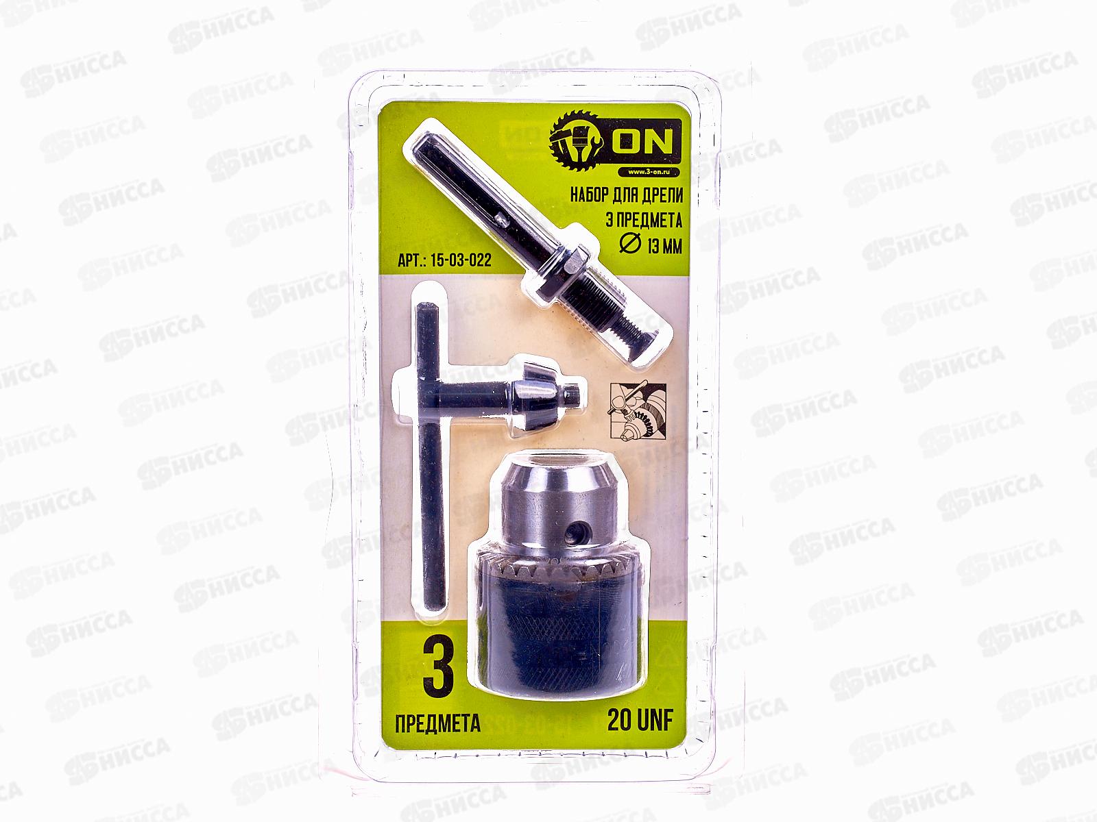 Набор для дрели 3 предмета (патрон ключевой 1,5-13мм 20UNF, ключ для патрона, переходник SDS-plus), ON
