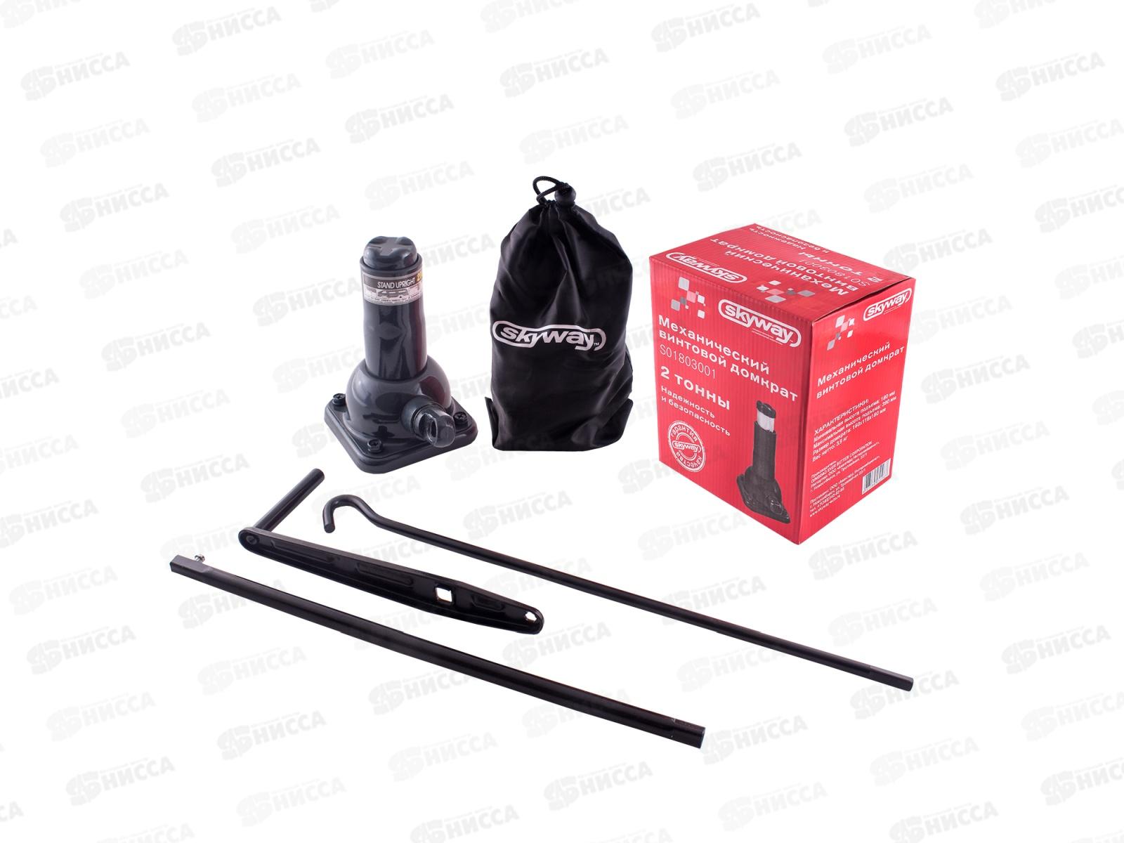 Домкрат механический винтовой (телескопический), ручка в комплекте, 2т h 180-390мм SKYWAY в коробке
