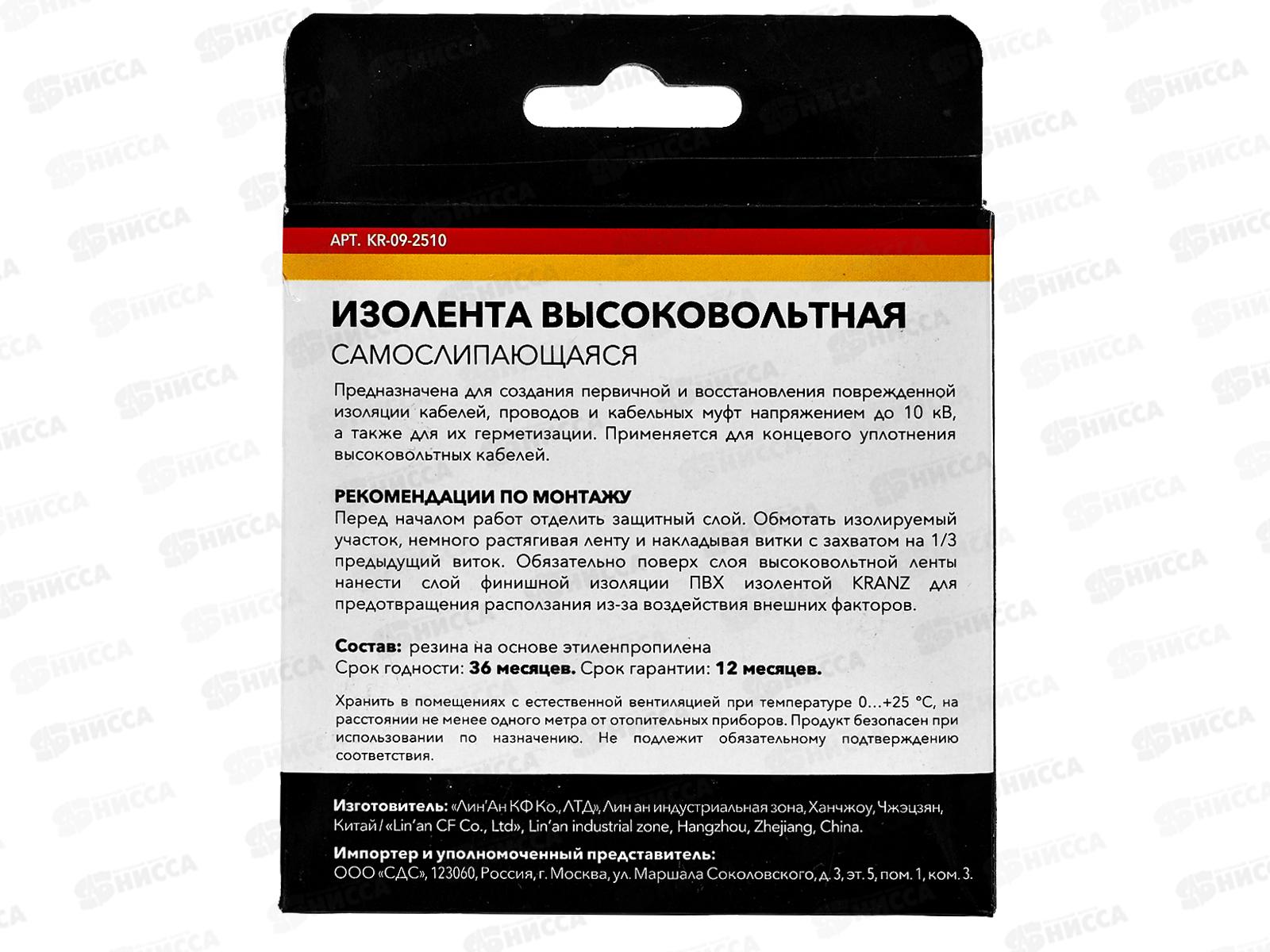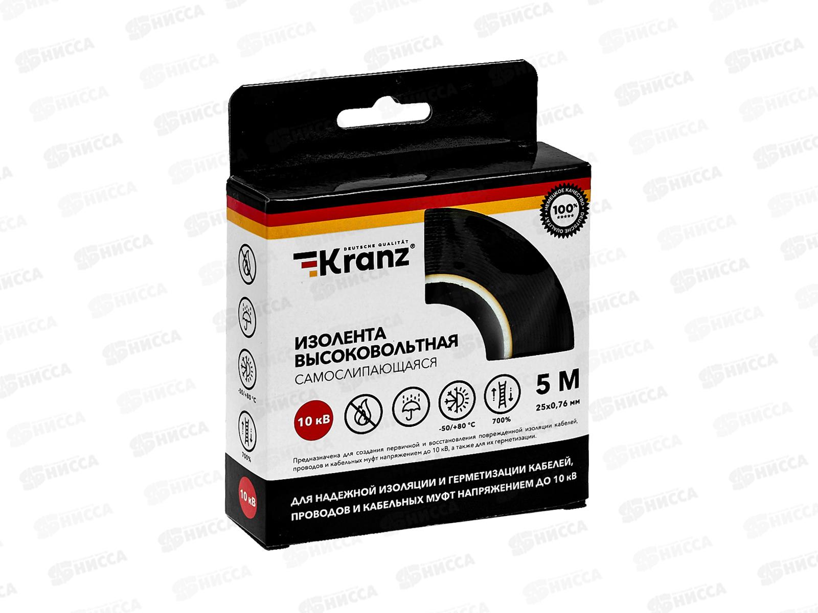 Изолента KRANZ высоковольтная самослипающаяся до 10кВ, 0.76*25мм*5м, KR-09-2510