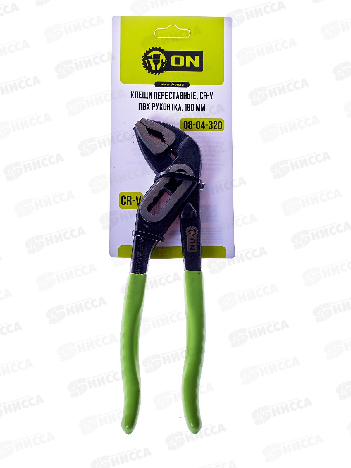 Клещи переставные, 180мм, Cr-V, ПВХ рукоятка ON, 08-04-320