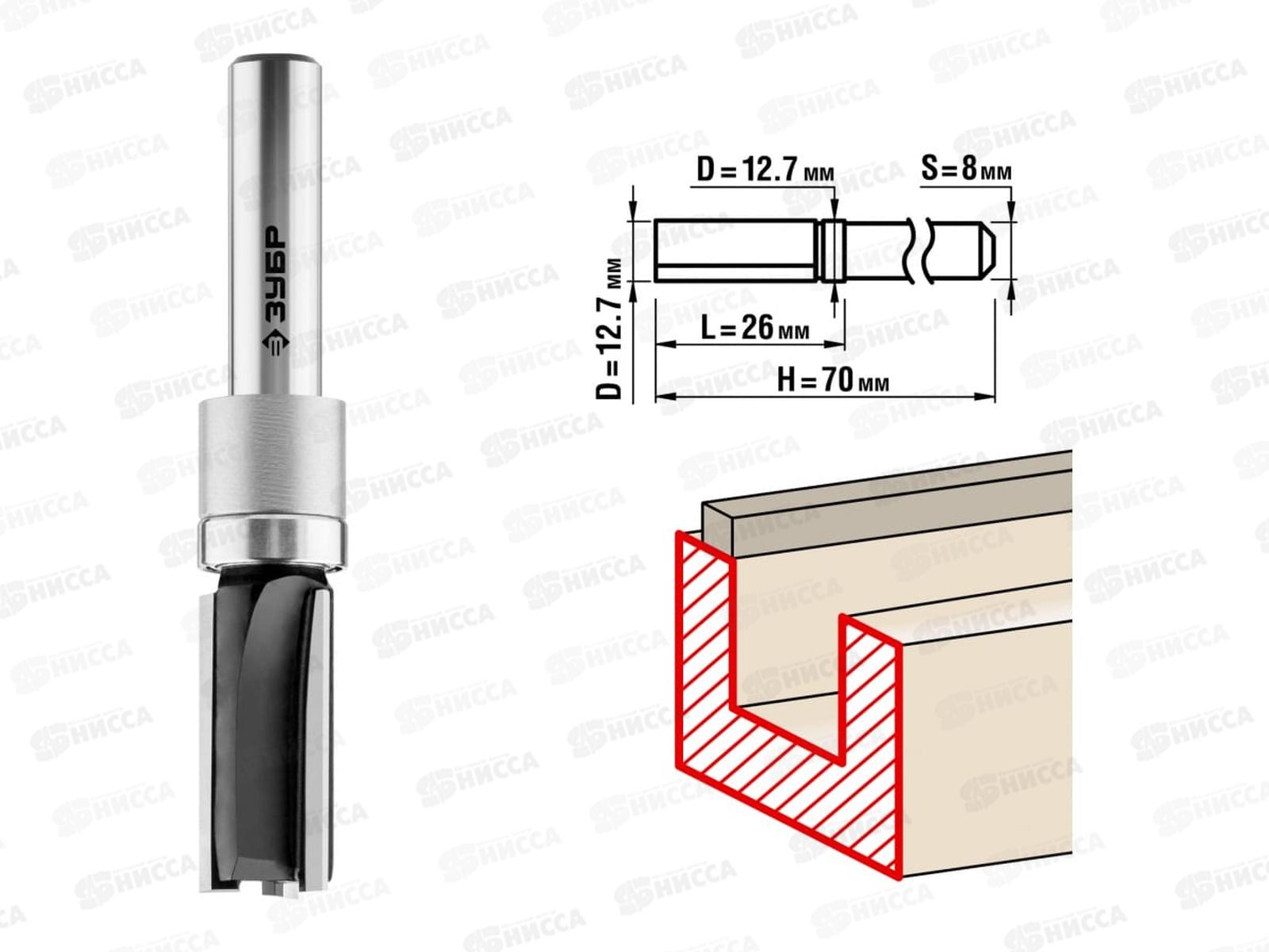 Фреза пазовая прямая 12.7*26мм верх.подшипник, хвостовик 8мм, 28781-12.7-26
