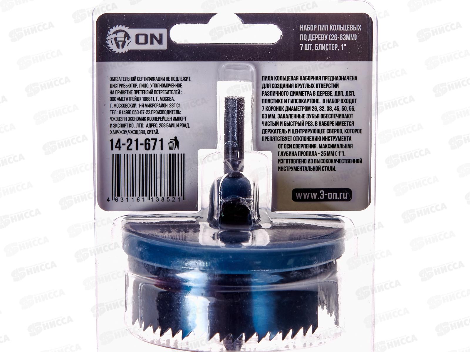Набор пил кольцевых (26-63мм), 7предметов блистер, 1", ON, 14-21-671