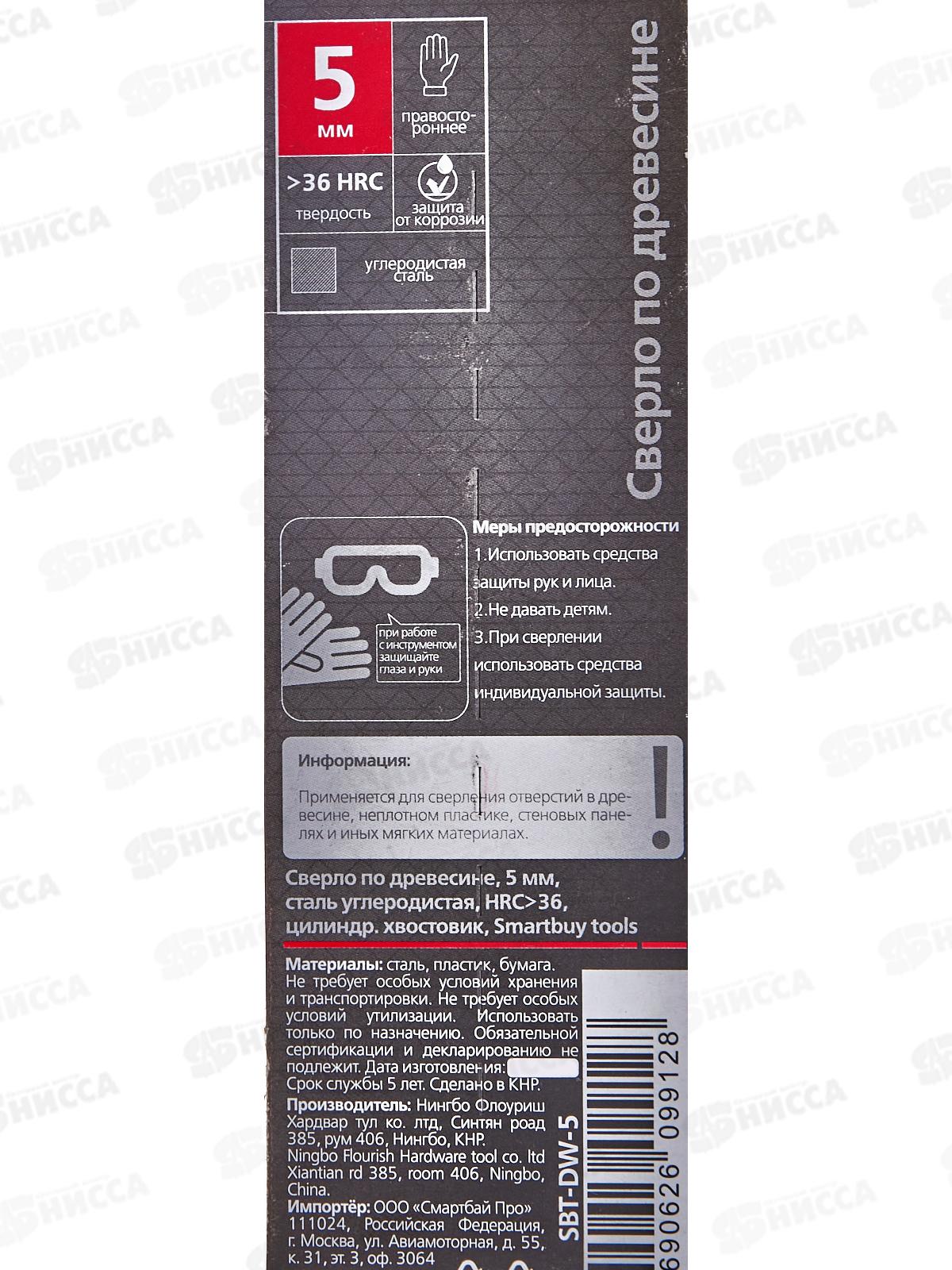 Сверло по дереву 5 мм, Smartbuy tools, SBT-DW-5