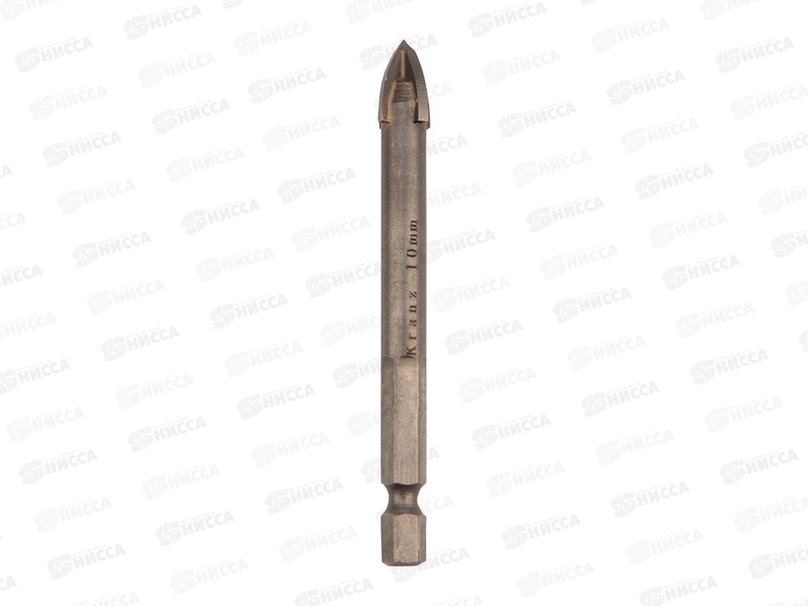 Сверло по стеклу и керамике 10мм, 4 грани, шестигранный хвостовик Kranz, KR-91-0651