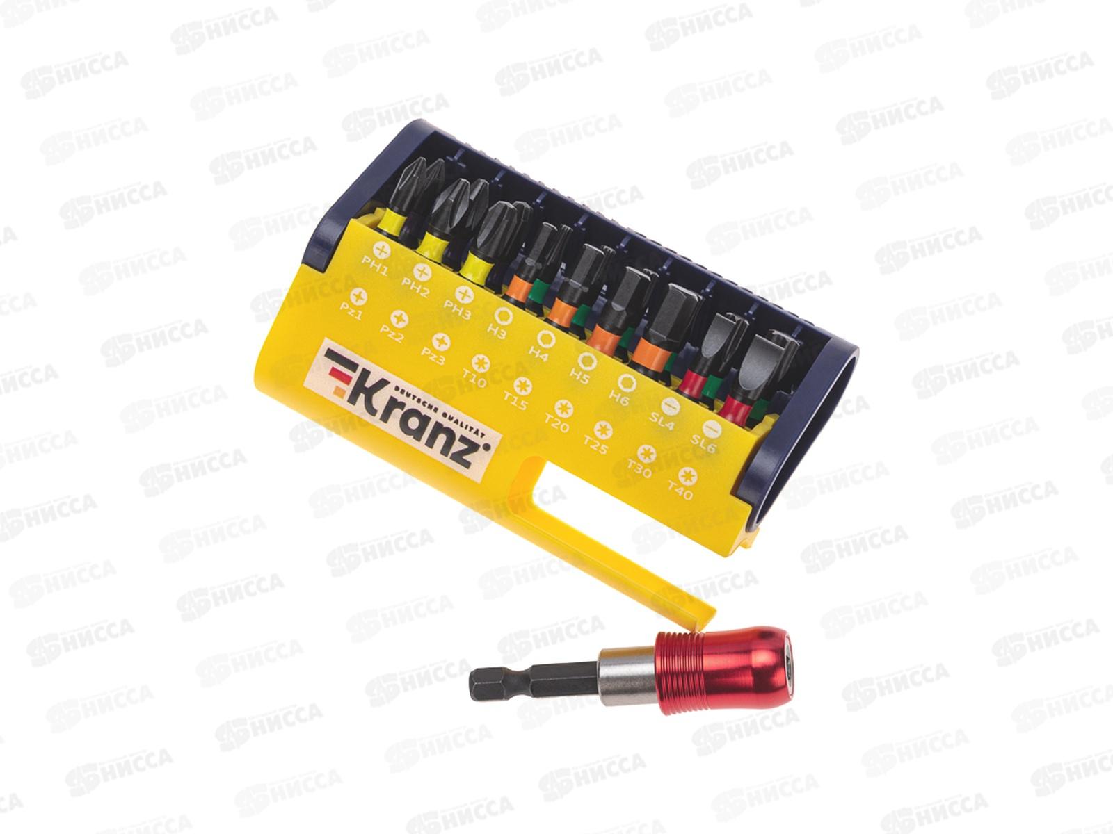 Набор бит с магнитным держателем, пластиковый кейс, 19 шт KRANZ, KR-92-0465