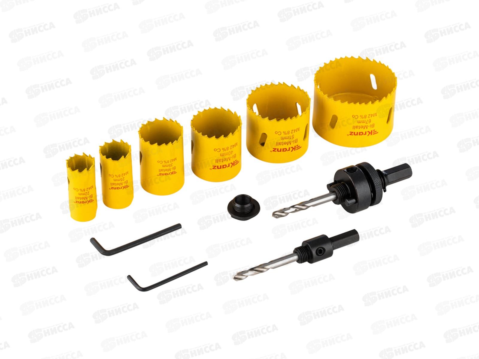 Набор коронок Bimetal (22, 25, 35, 40, 51, 67), 11 предметов, металлический кейс KRANZ, KR-92-0202-1