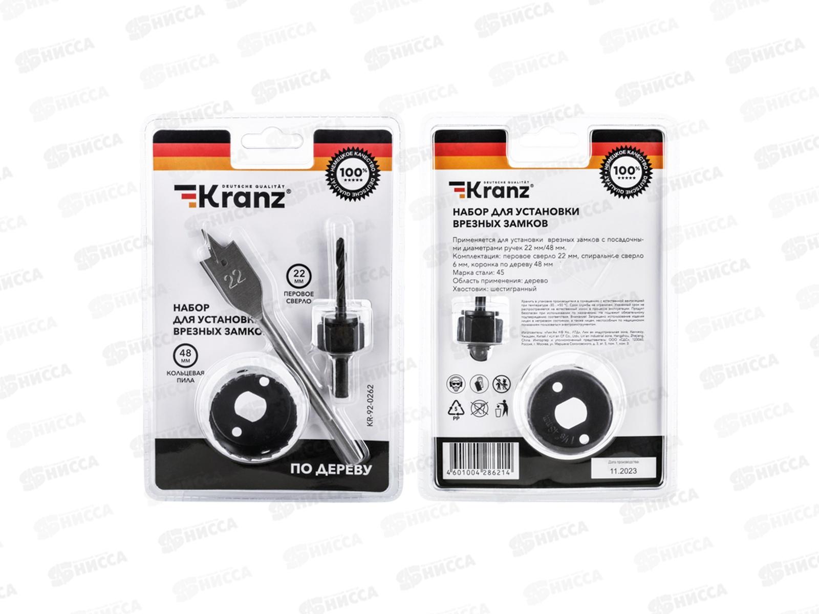 Набор для установки врезных замков, 22 мм/48 мм (перовое сверло/кольцевая пила) KRANZ, KR-92-0262