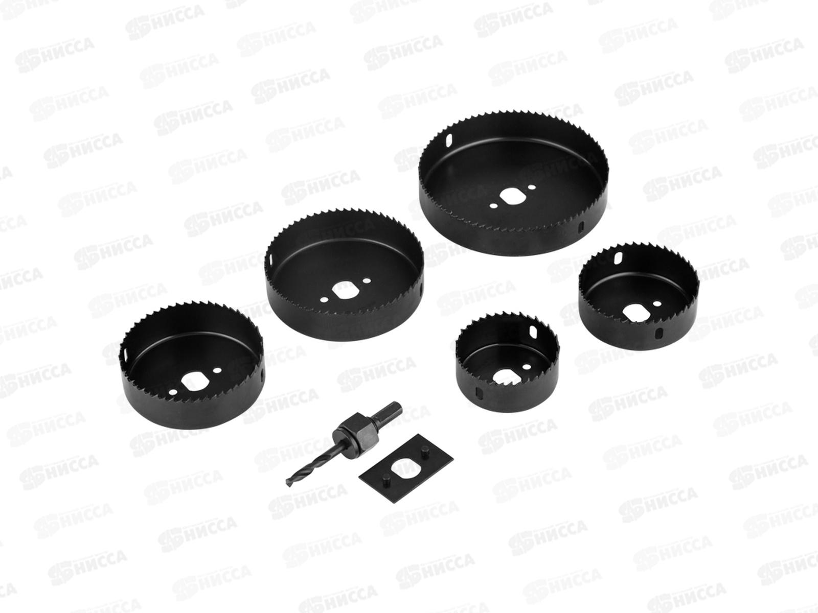 Набор кольцевых пил предназначен для сверления древесины, ДСП, ДВП и пластика. Пилы совместимы с дрелью, станком или шуруповёртом. Они изготовлены из углеродистой стали, устойчивой к повреждениям, поэтому подходят для продолжительного использования. Зубья пил разведены, что облегчает удаление стружки и повышает скорость сверления. Комплектация: пилы размером 64, 76, 89, 102, 127 мм – 5 шт; хвостовики шестигранные 9,5 мм и 11 мм – 2 шт; шестигранный ключ 2,5 мм; центрирующее сверло.