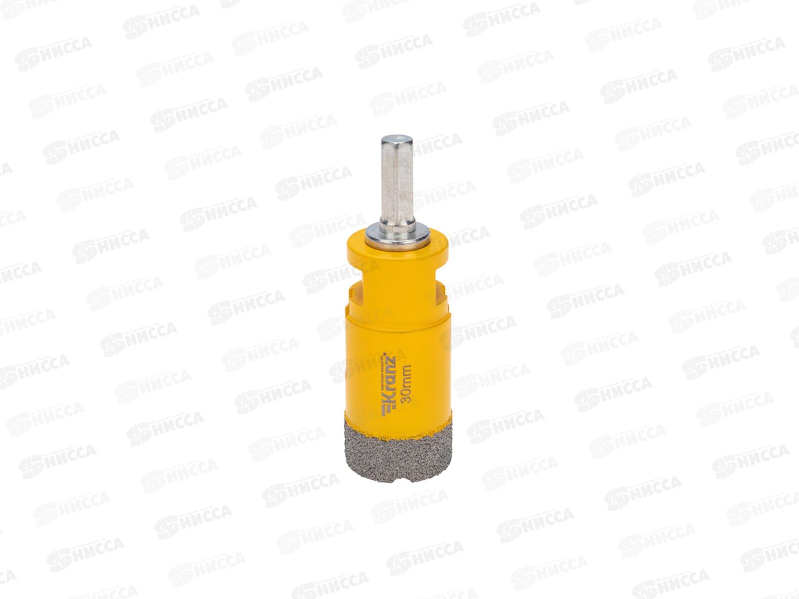 Коронка алмазная профессиональная по керамограниту и железобетону М14, вакуумное спекание, 30мм, для УШМ KRANZ, KR-92-1014