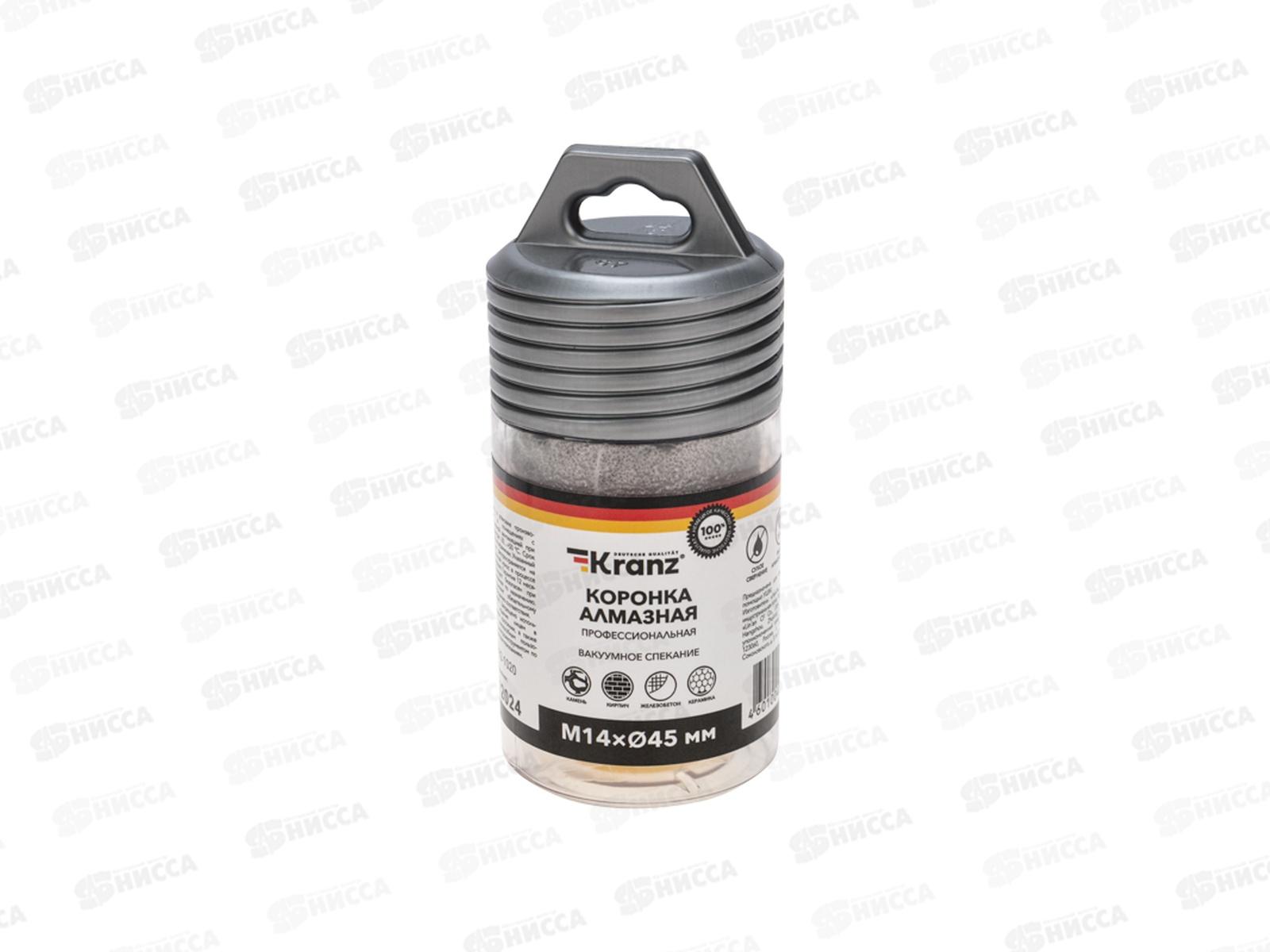 Коронка алмазная профессиональная по керамограниту и железобетону М14, вакуумное спекание, 45мм, для УШМ KRANZ, KR-92-1020