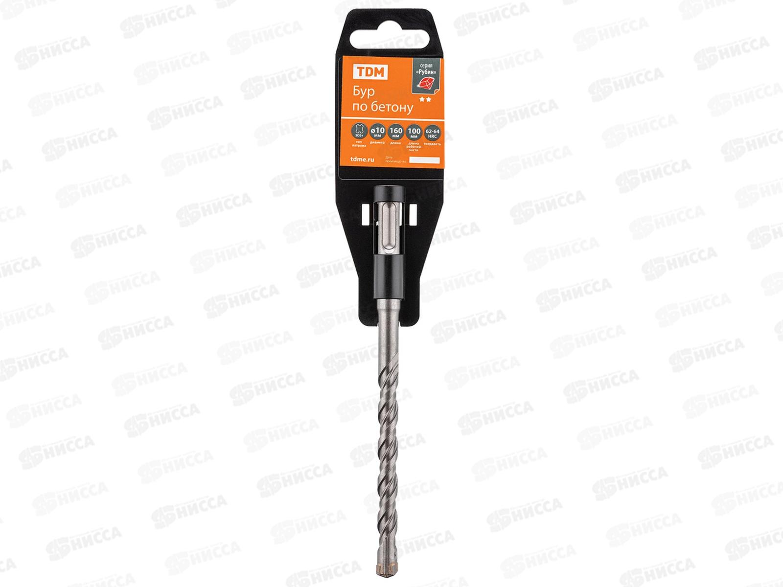 Бур по бетону Рубин 10x160x100 мм, SDS-Plus, 4 грани, пластиковый держатель, 1 шт TDM SQ1094-0207 для сверления глухих/сквозных отверстий в кирпиче, бетоне, камне. Используется в электрических перфораторах с комбинированным патроном типа SDS-Plus. Твердосплавный наконечник - карбид вольфрама. Твердость по HRC – от 62 до 64.