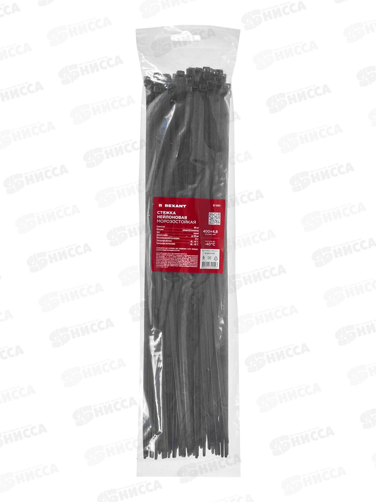 Стяжка нейлоновая морозостойкая 400*4,8мм, черная 100шт, REXANT, 87-0401