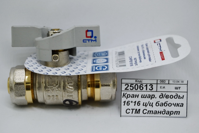 Кран шаровый для воды 16*16 цанга/цанга, бабочка СТМ Стандарт *25/200