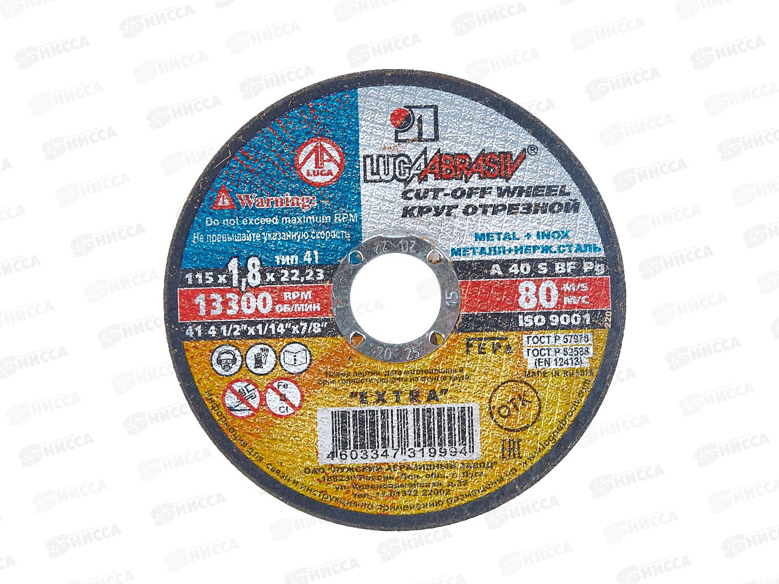 Круг отрезной по металлу (Луга) 115*1,8*22 *25 (нержавеющая сталь)