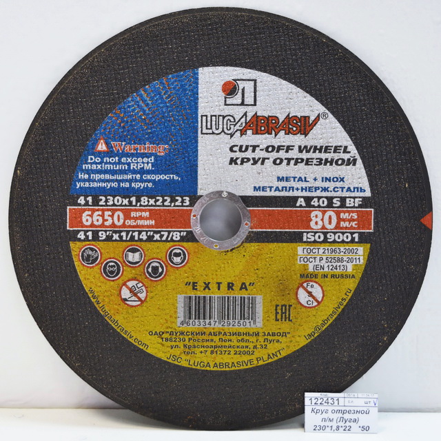 Круг отрезной по металлу (Луга) 230*1,8*22 *25