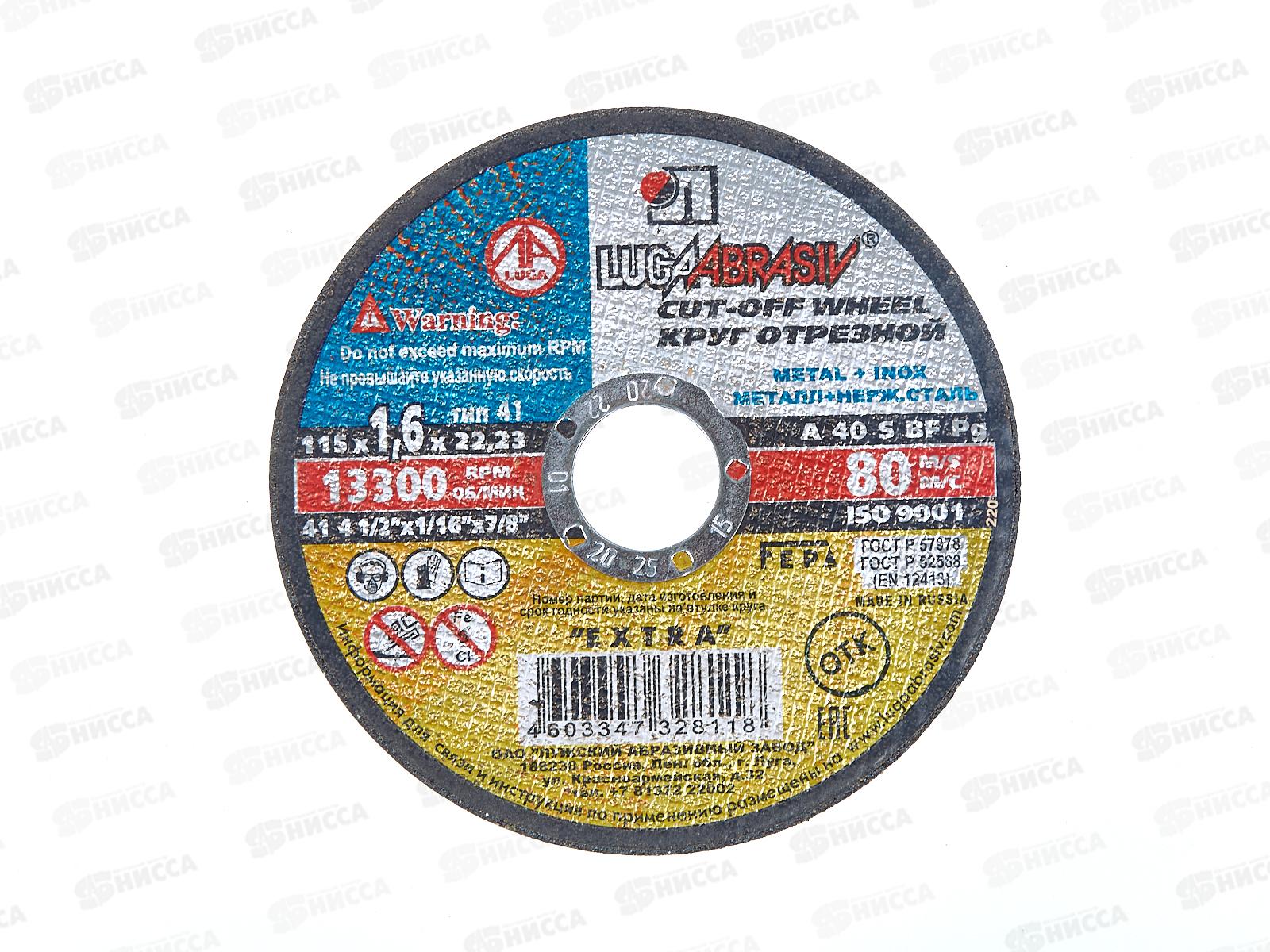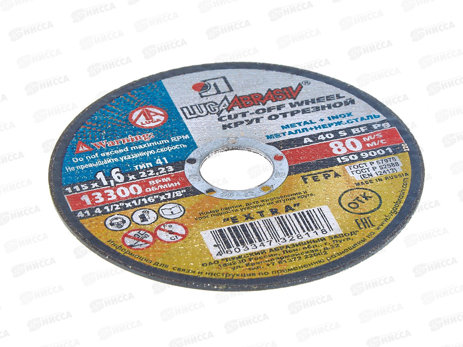 Круг отрезной по металлу (Луга) 115*1,6*22 *25 (нержавеющая сталь)