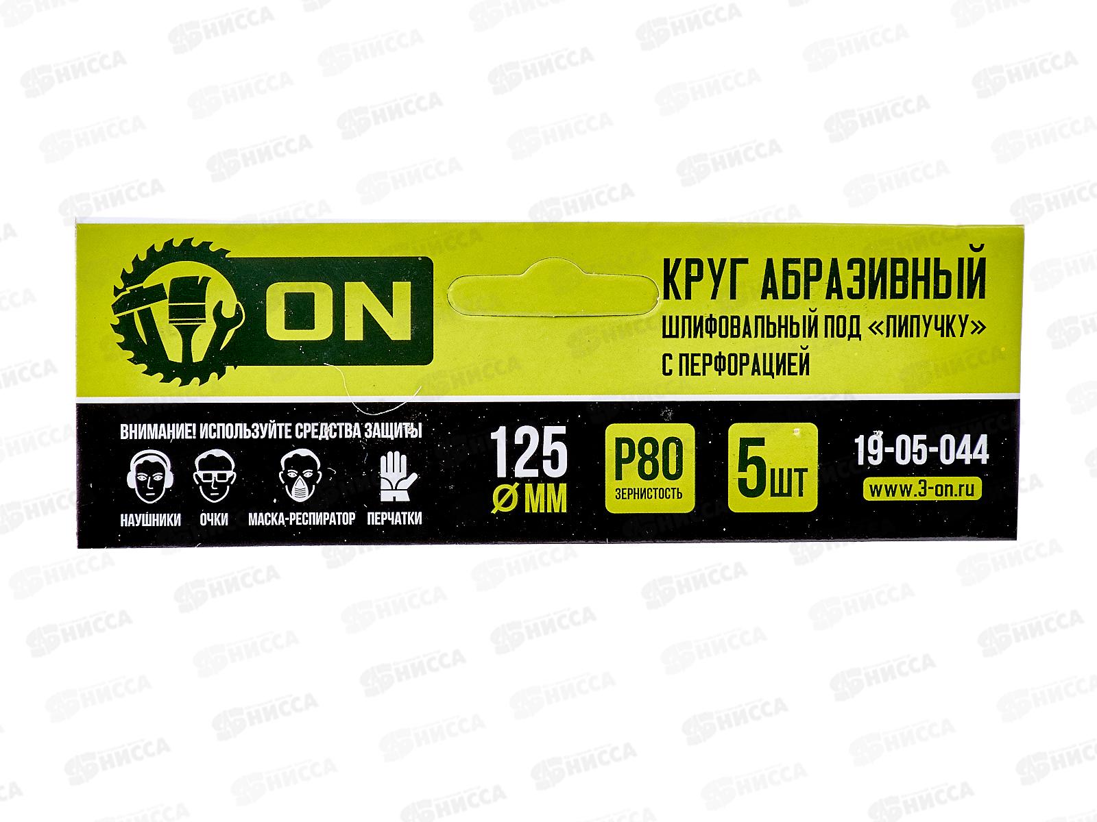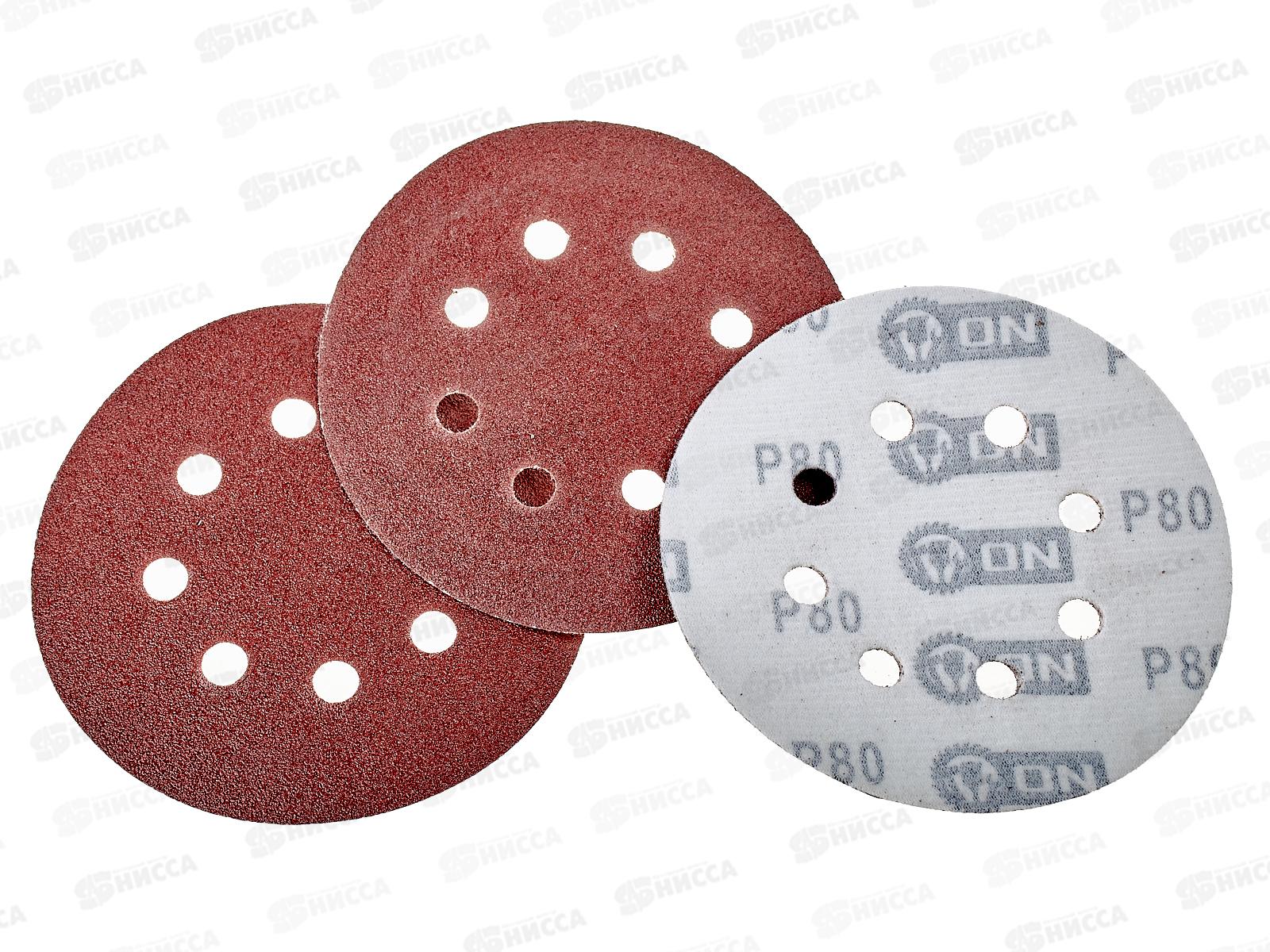 Круг абразивный шлифовальный под липучку с перфорацией 125мм Р80 5шт ON