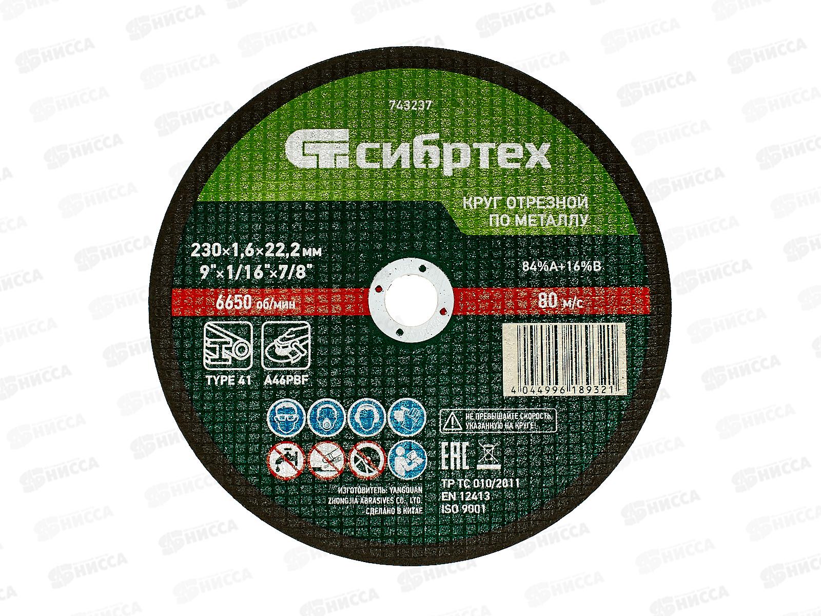 Круг отрезной по металлу 230*1,6*22.2мм Сибртех